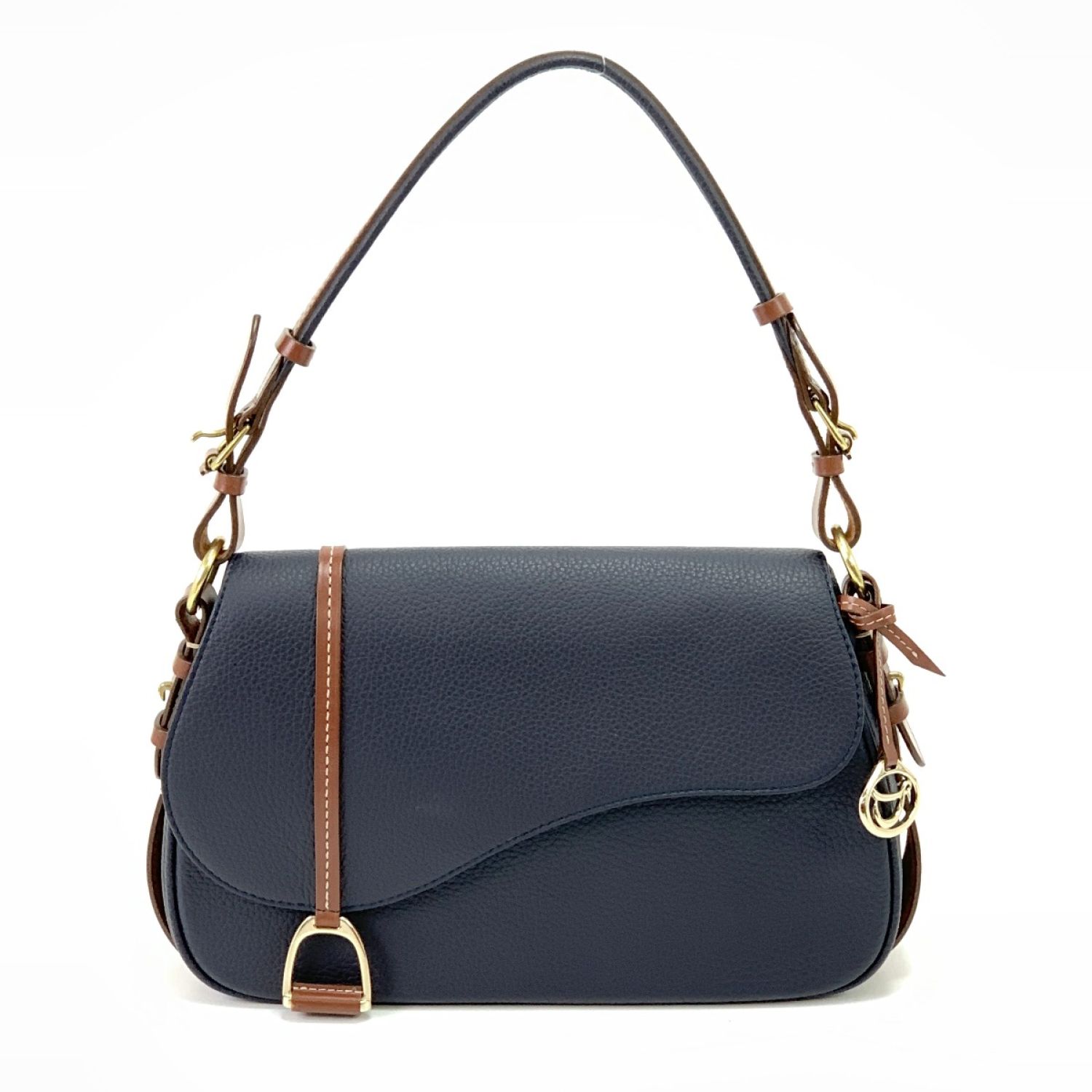 【商品名】中古 Somes Saddle ソメスサドル セミショルダーバッグ ストラップ付 ネイビー Aランク