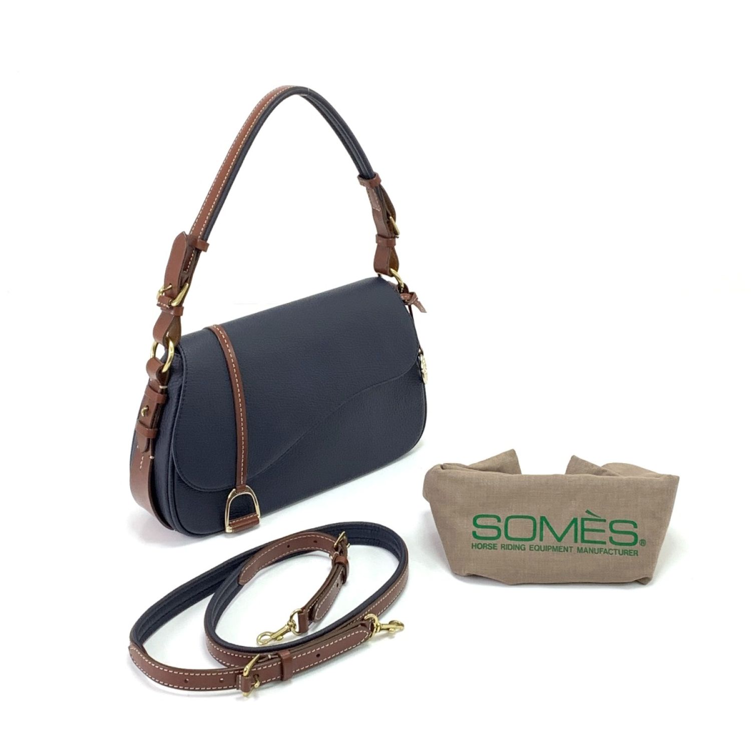 Somes Saddle ソメスサドル セミショルダーバッグ ストラップ付 ネイビー