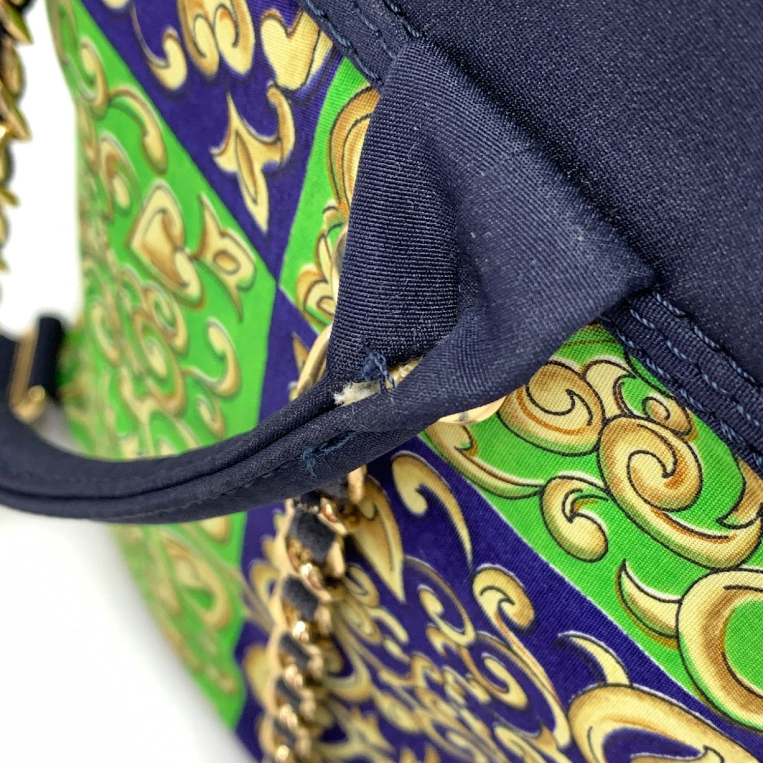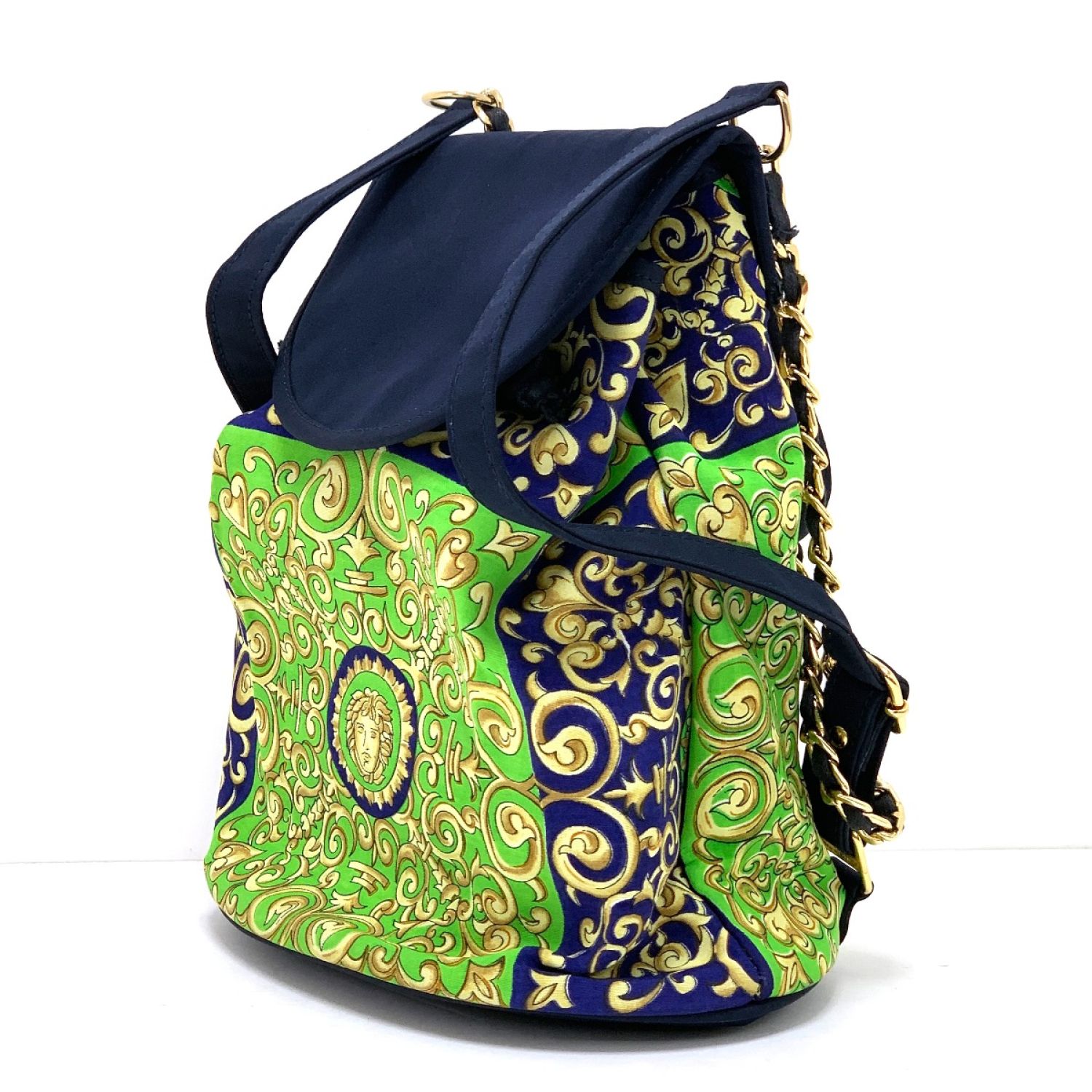 【商品名】中古 VERSACE ベルサーチ ミニリュック ネイビー×グリーン Cランク
