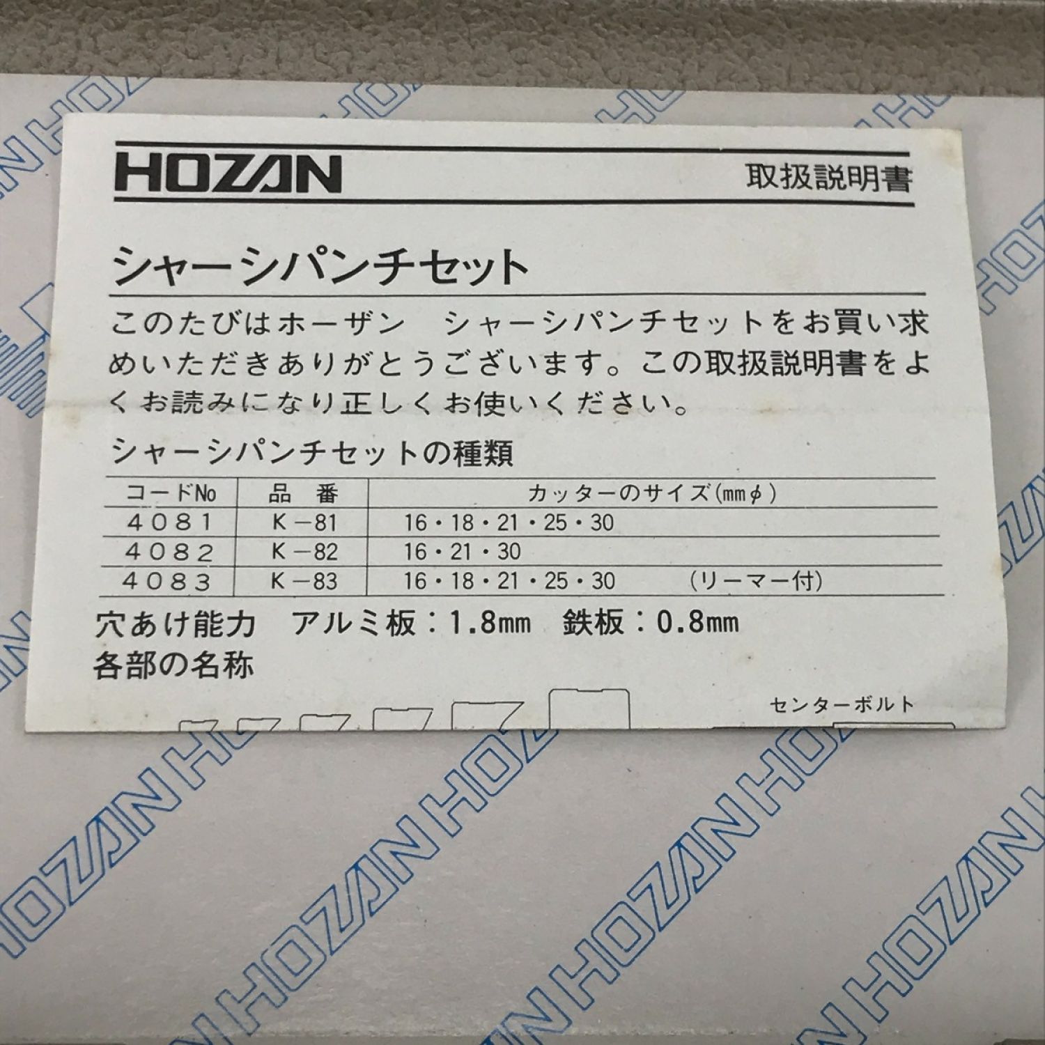 【商品名】中古 HOZAN シャーシパンチセット K-83 Bランク