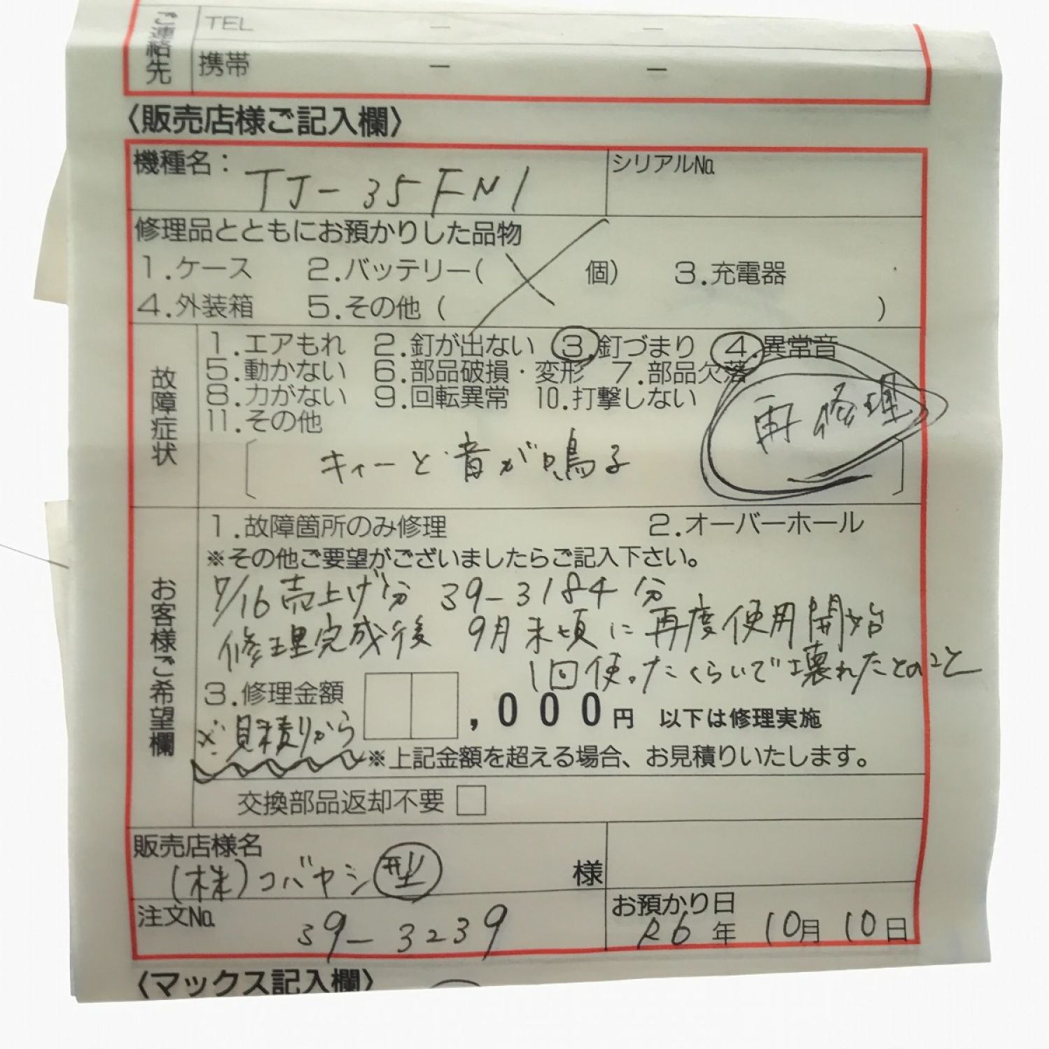 【商品名】中古 MAX マックス エアツール フィニッシュネイラ 充電器・充電池2個・ケース付 TJ-35FN1 Bランク