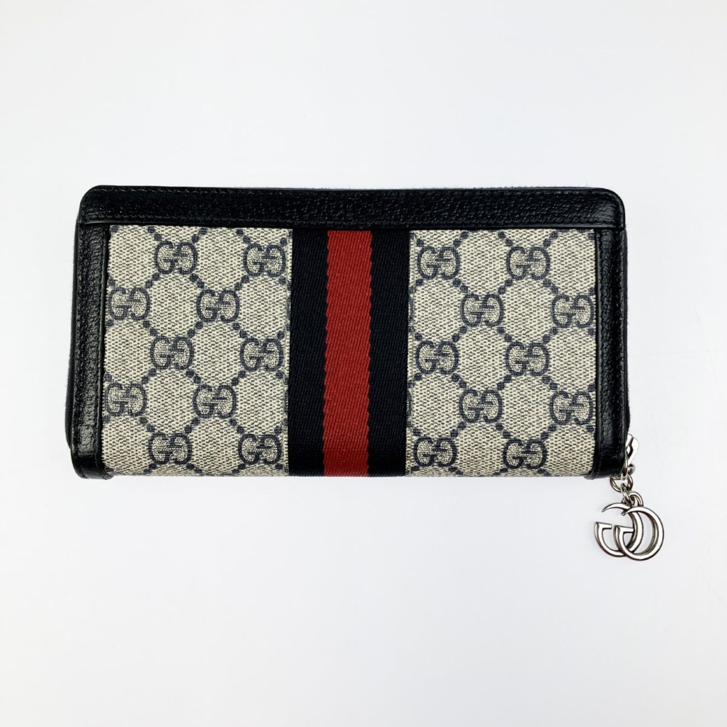 【商品名】中古 GUCCI グッチ オフィディア GG ジップアラウンドウォレット 523154 ネイビー x ベージュ Bランク