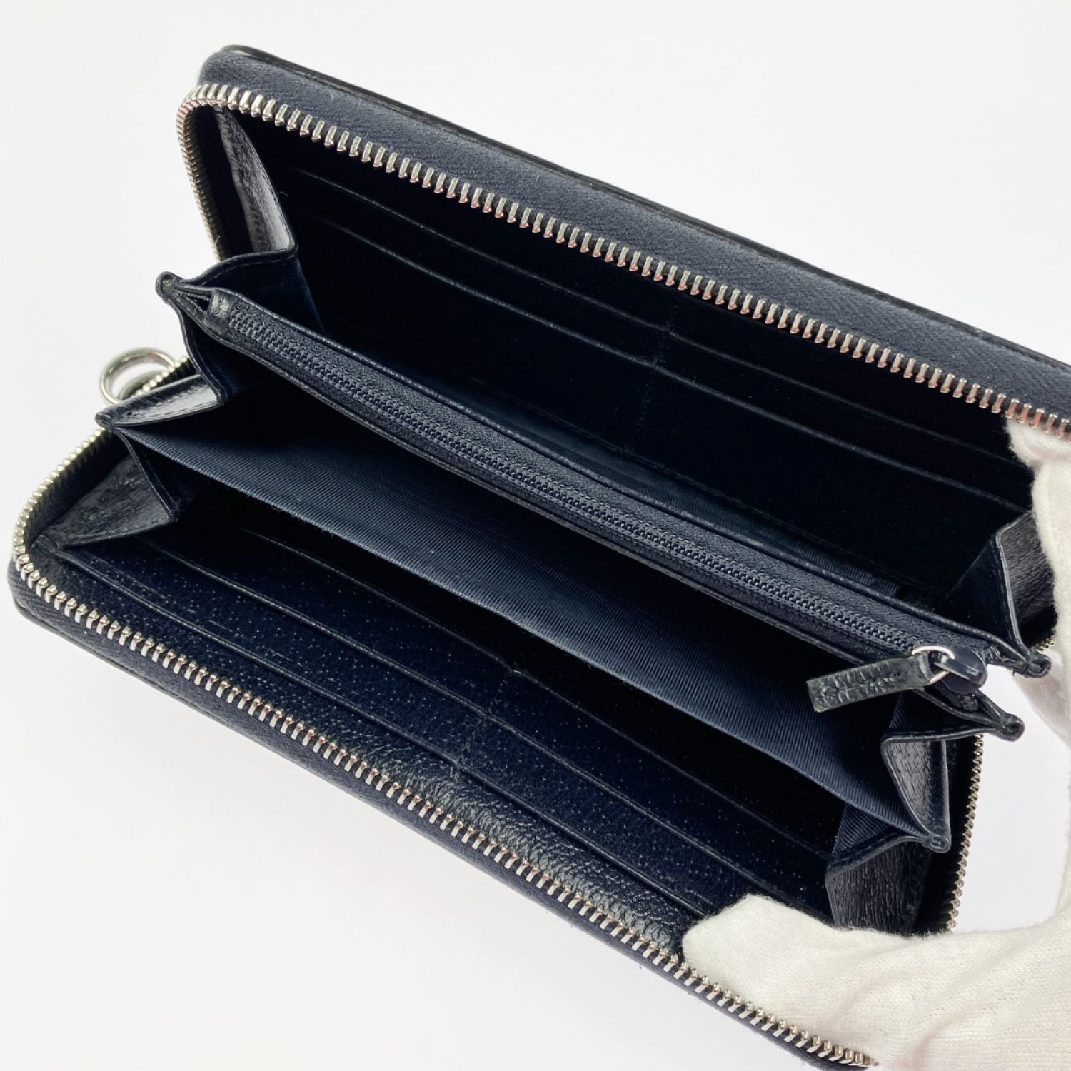GUCCI グッチ オフィディア GG ジップアラウンドウォレット 523154 ネイビー x ベージュ