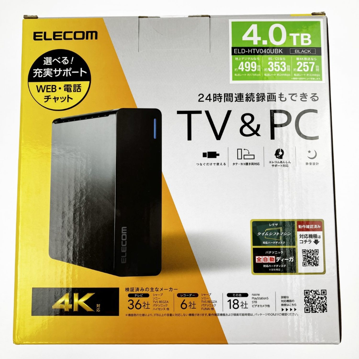 ELECOM エレコム TV録画対応 外付けハードディスク 4TB ELD-HTV040UBK ブラック 未開封