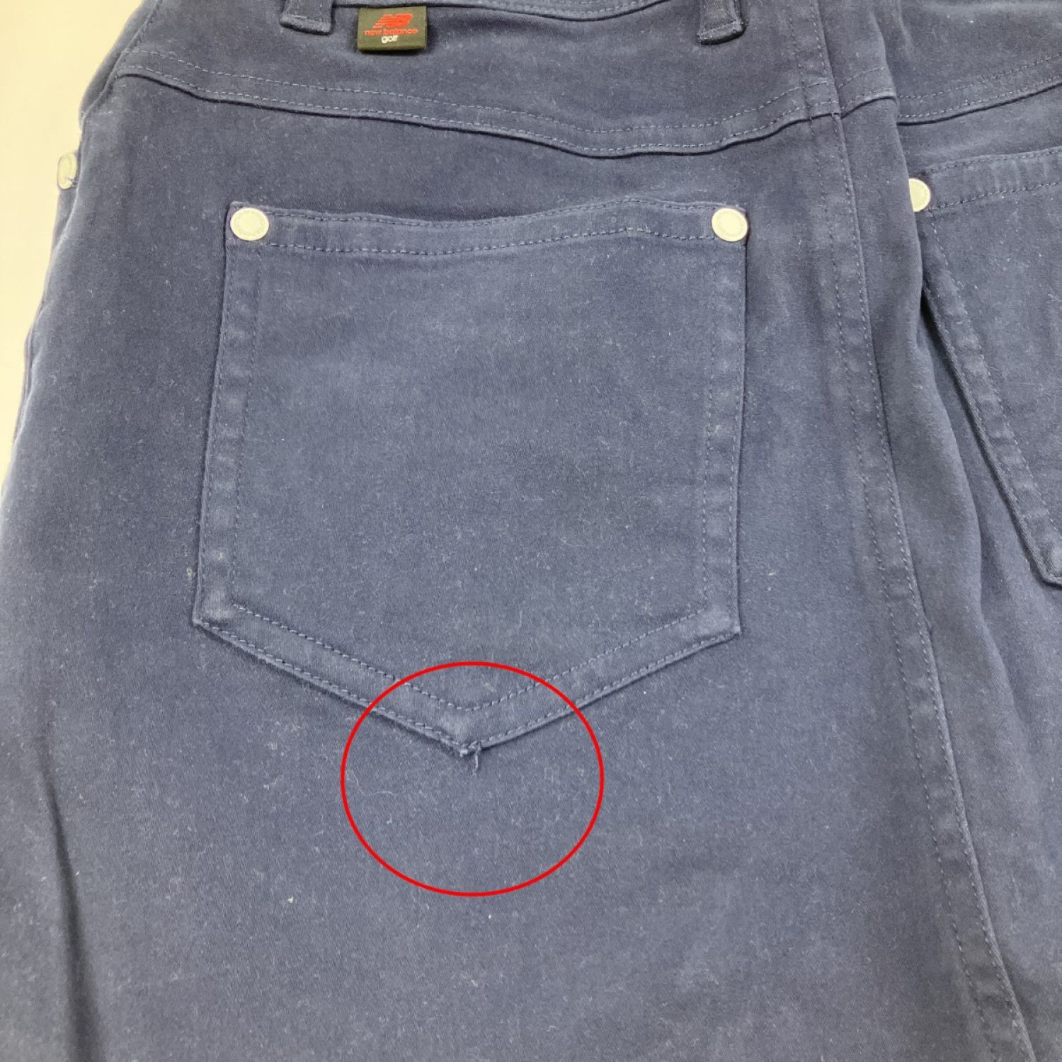 全体的に使用感と左後ポケットに僅かなホツレと擦れ、ウエスト部分に若干の痕がございますが目立った汚れ等は見受けられませんでした。