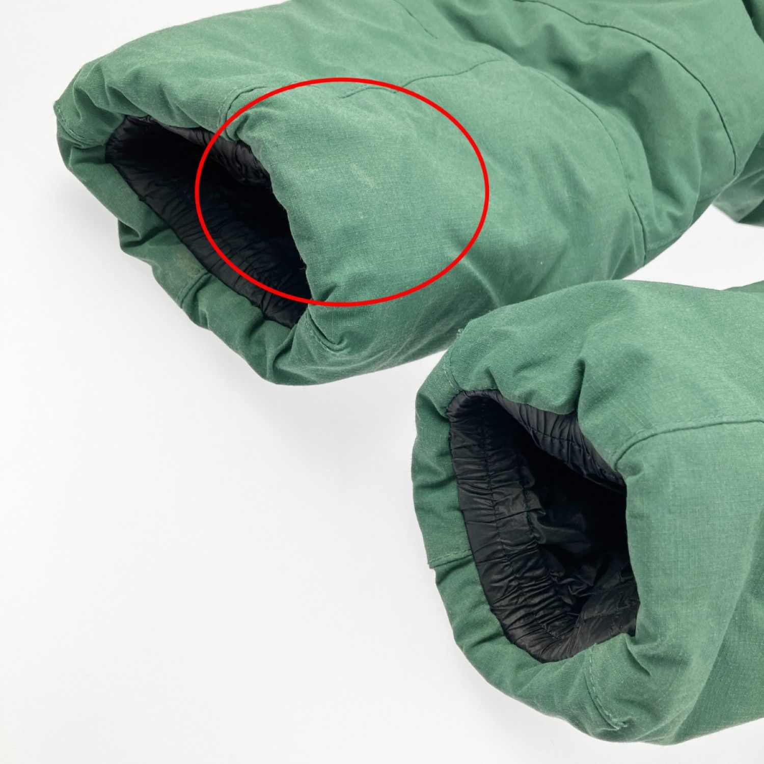 また、ファスナー上部付近や左腰ポケットのファスナー付近、袖口や両肘付近に若干の汚れの付着が見受けられます。