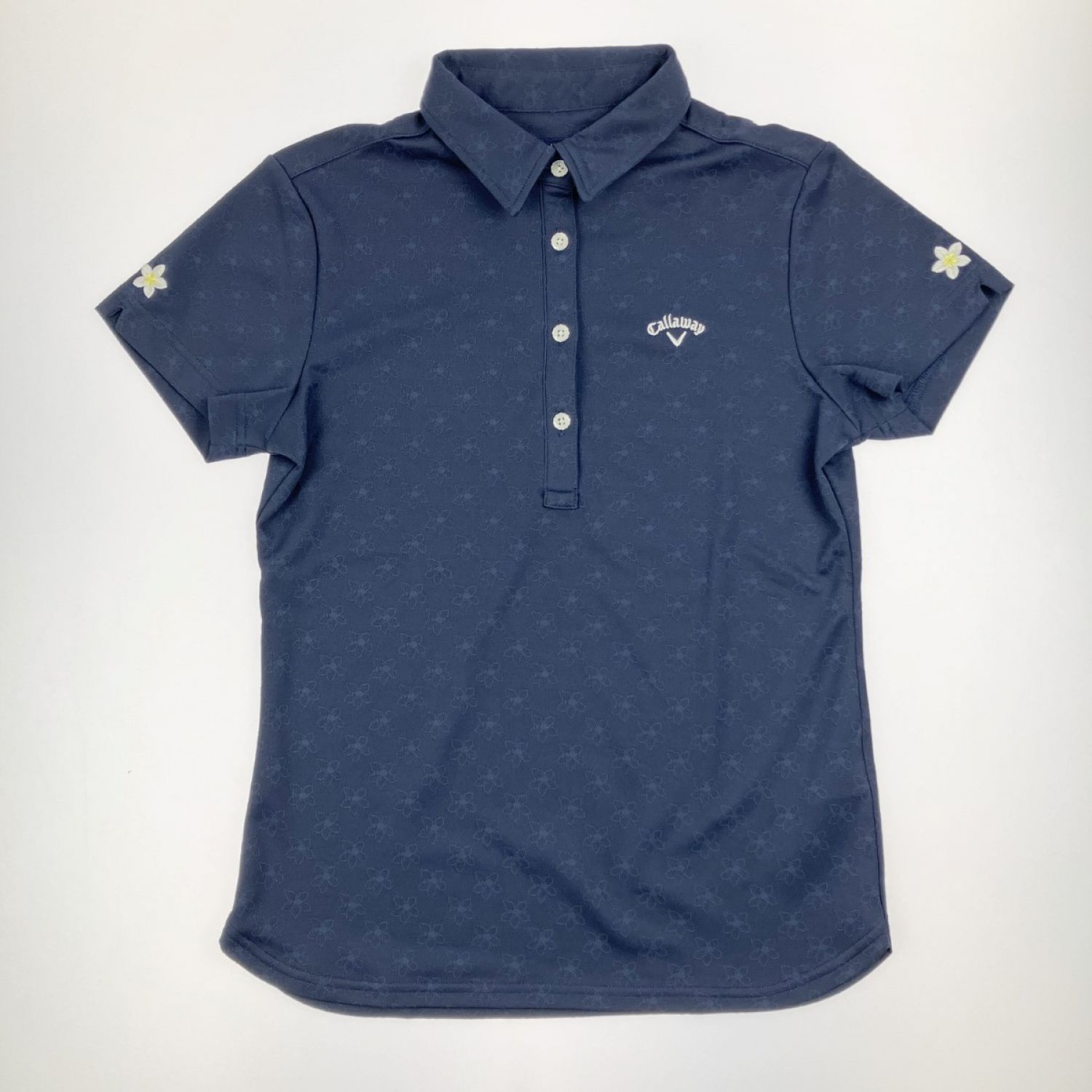 【商品名】中古 Callaway キャロウェイ レディース ゴルフウェア フラワー柄 ポロシャツ M ネイビー Bランク