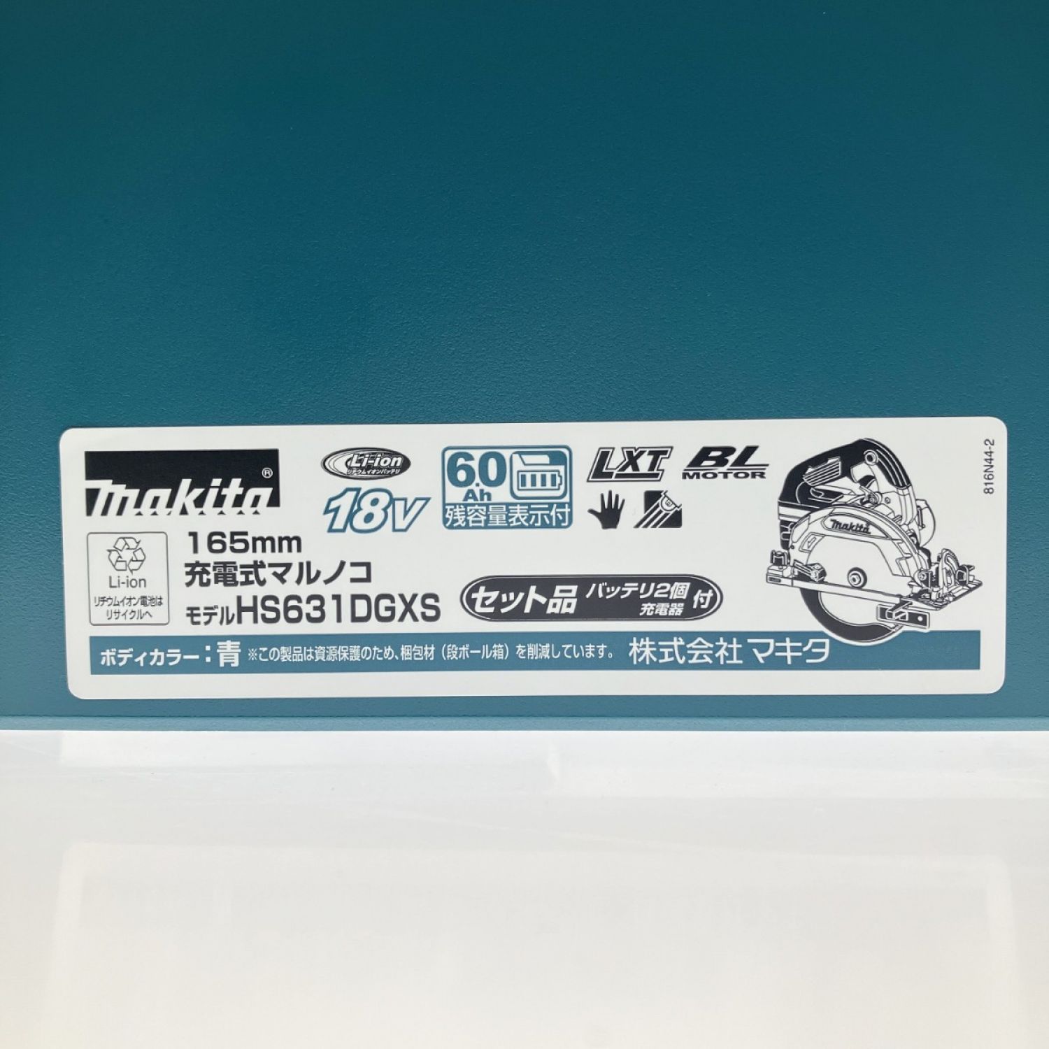 【商品名】中古 MAKITA マキタ 充電式マルノコ 鮫肌 青 165mm 18V 6Ah セット品 HS631DGXS 開封未使用品 Sランク