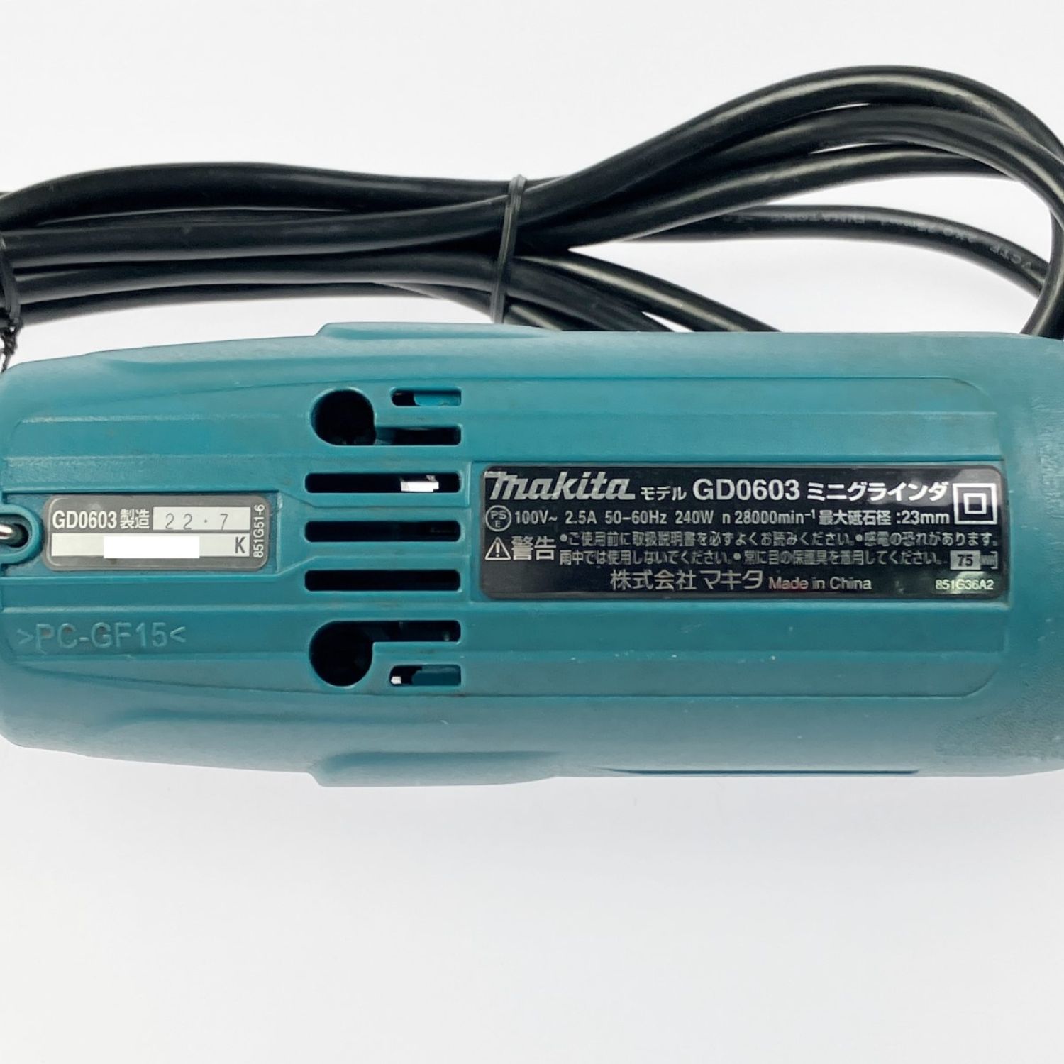 【商品名】中古 MAKITA マキタ コード式 ミニグラインダ GD0603 Bランク