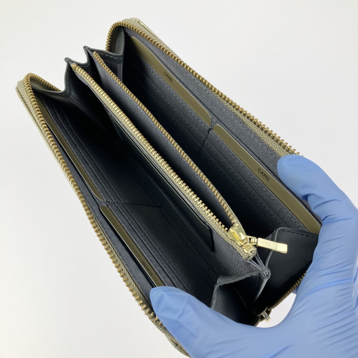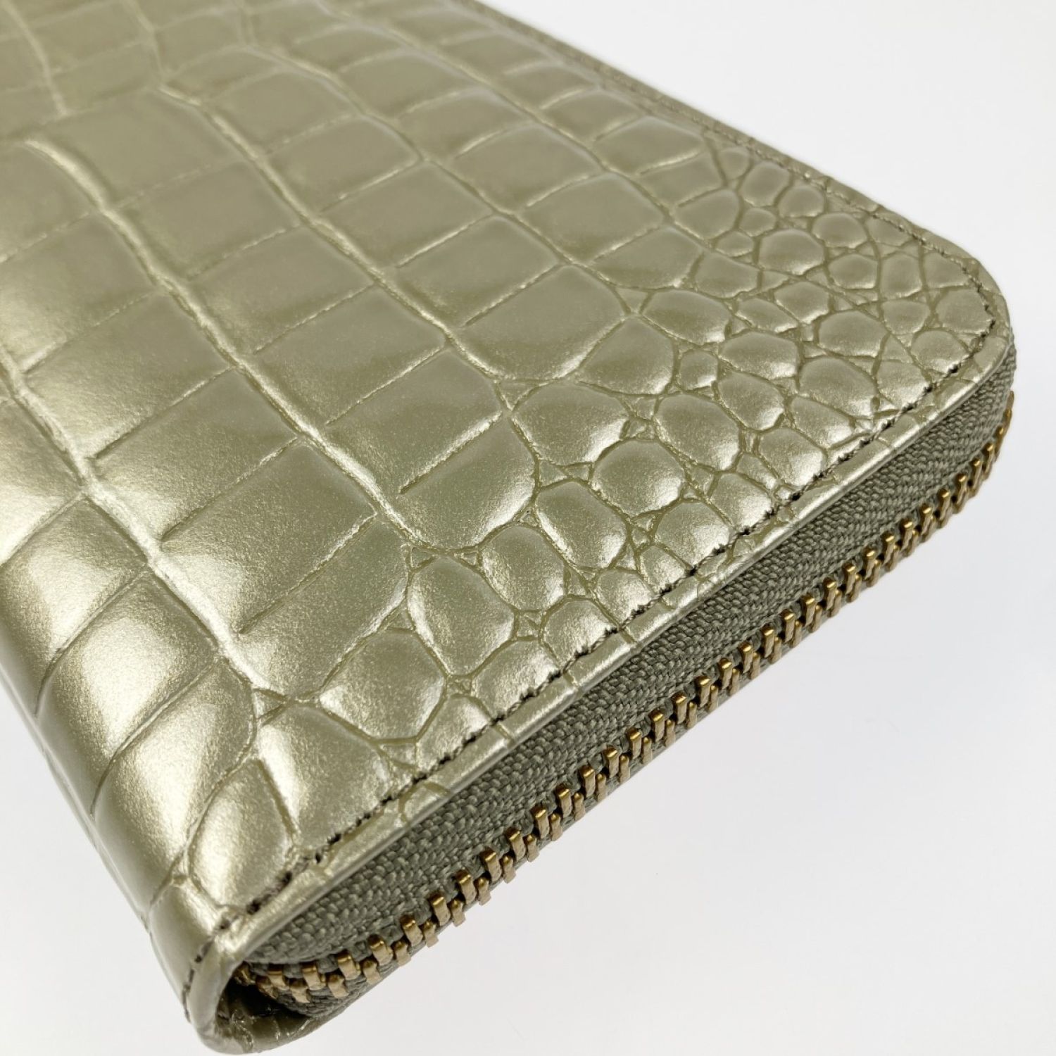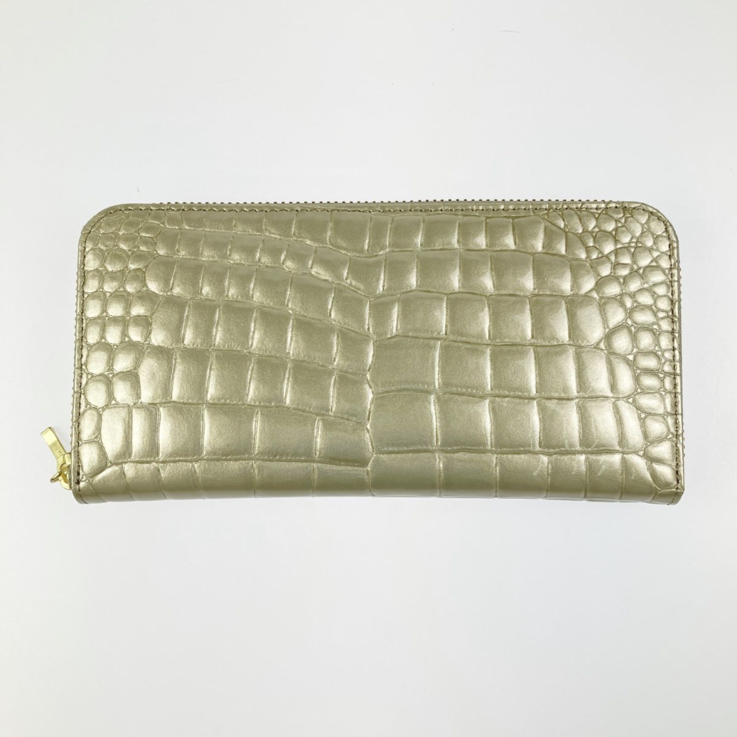 Takano 鎌倉高野 長財布 ラウンドファスナー クロコ型押し エナメル シャンパンゴールド