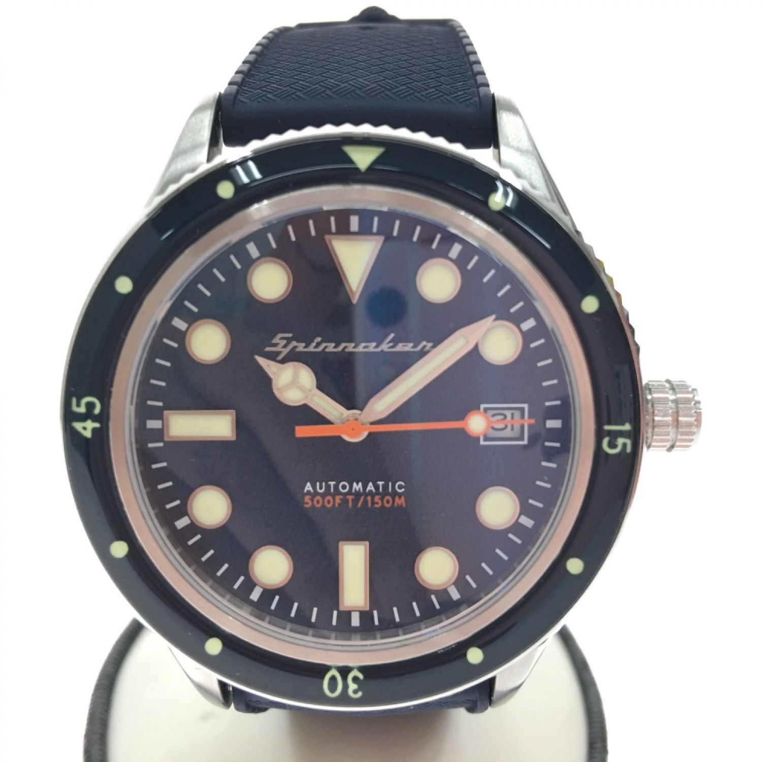 【商品名】中古 SPINNAKER 高性能 自動巻き ダイバーズウォッチ TiCTAC限定モデル ラバーベルト SP-5075-22-RUB ネイビー Aランク