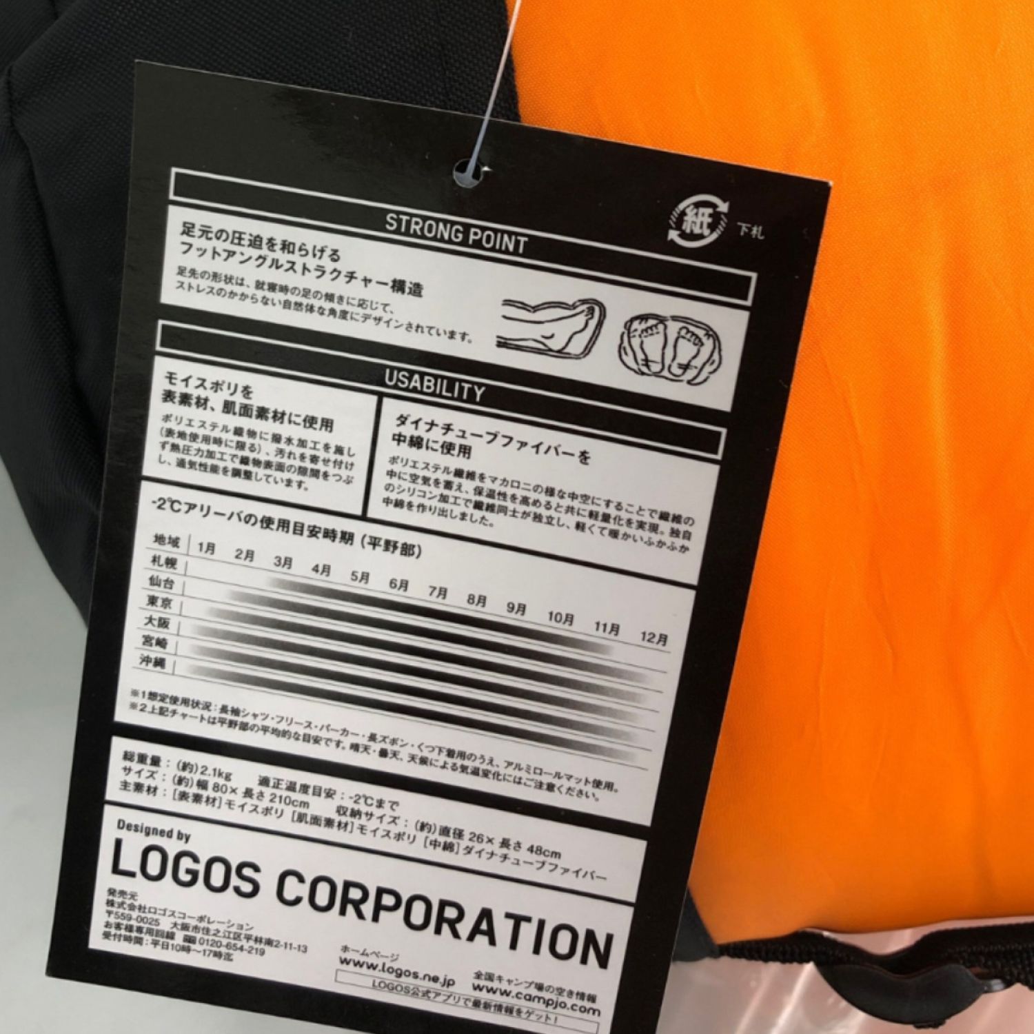 【商品名】中古 LOGOS ロゴス アウトドア用品 寝袋 neos 丸洗いアリーバ・-2 WASHABLE ARRIBA・-2 Sランク