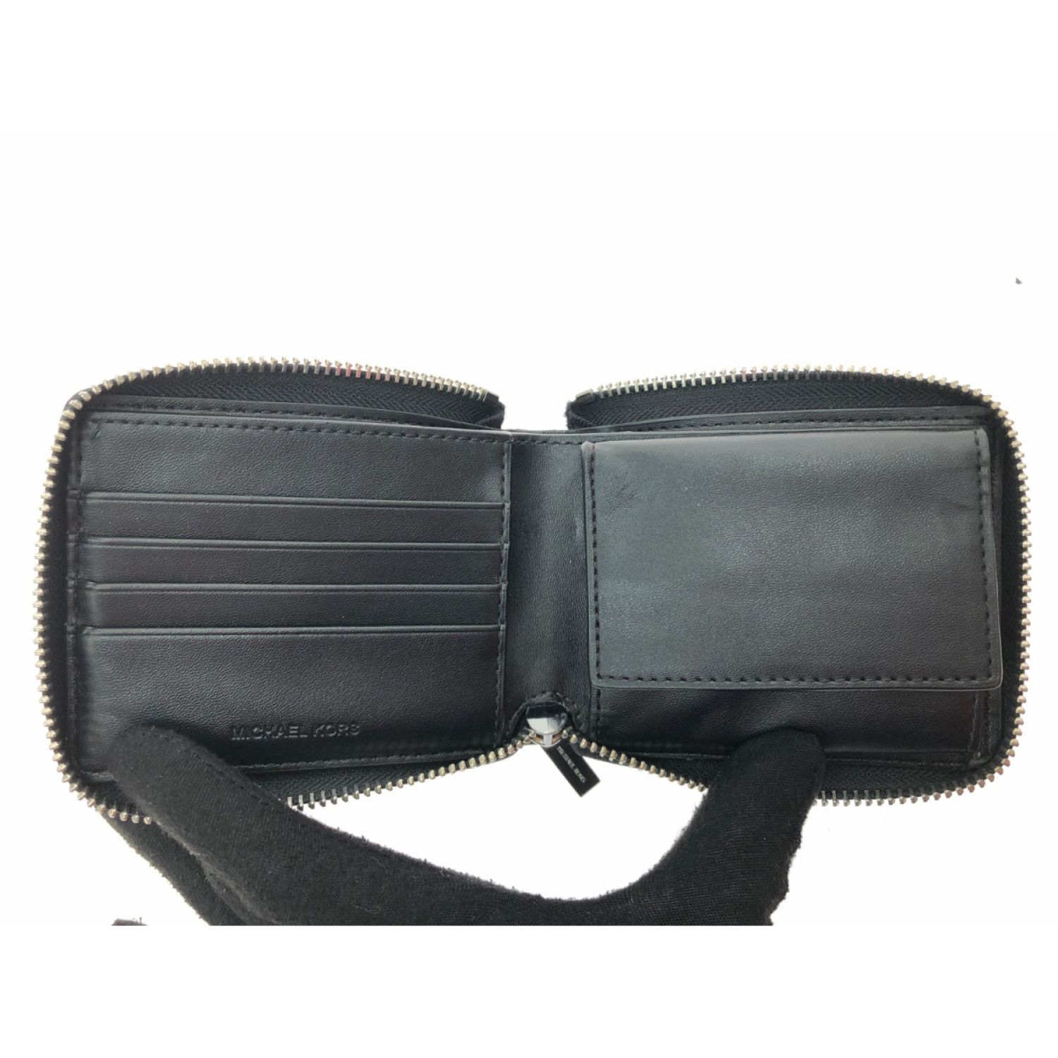 【商品名】中古 MICHAEL KORS マイケルコース メンズ 二つ折り財布 シグネチャー W ビルフォールド ジップ アラウンド 36U2LCOF3B ホワイト Bランク
