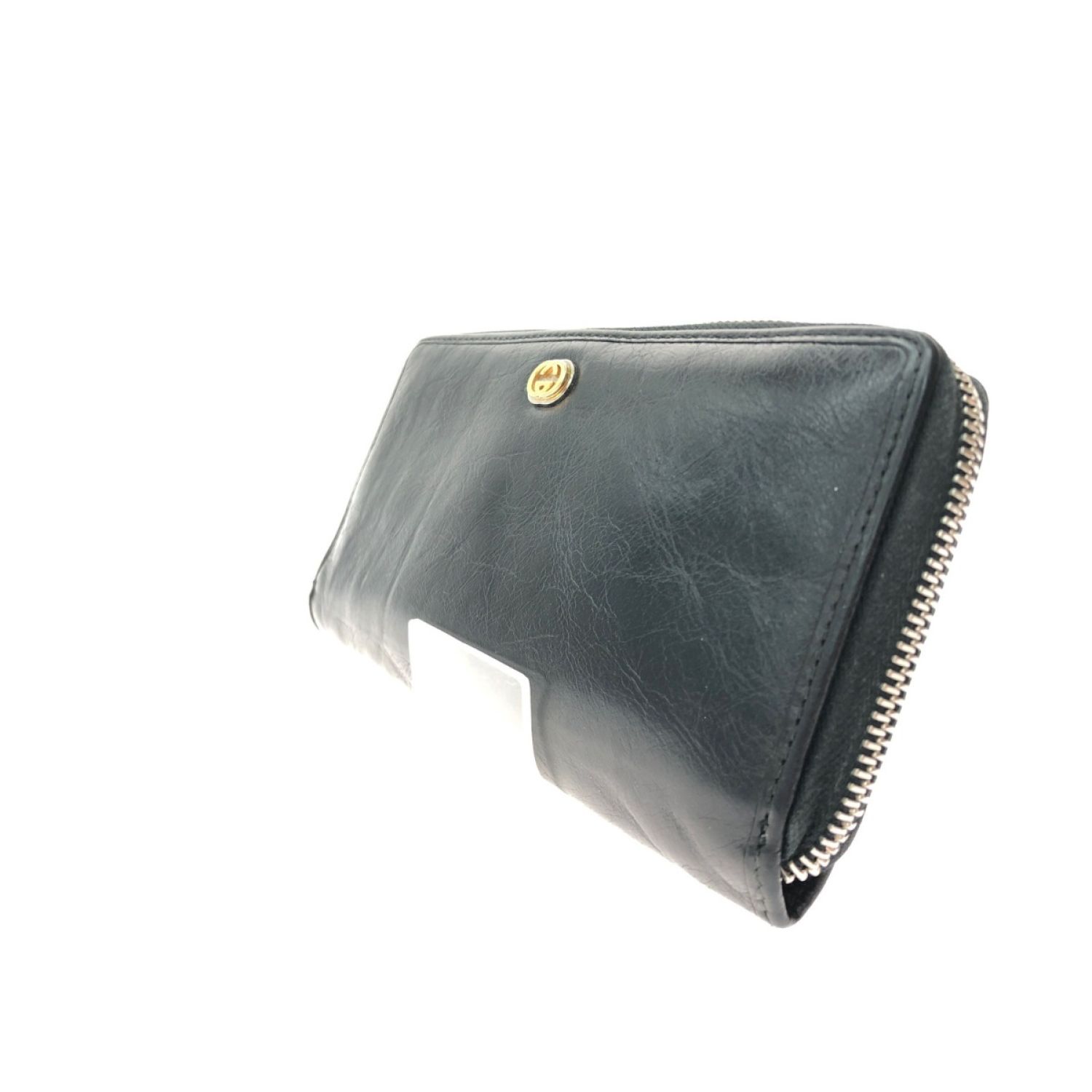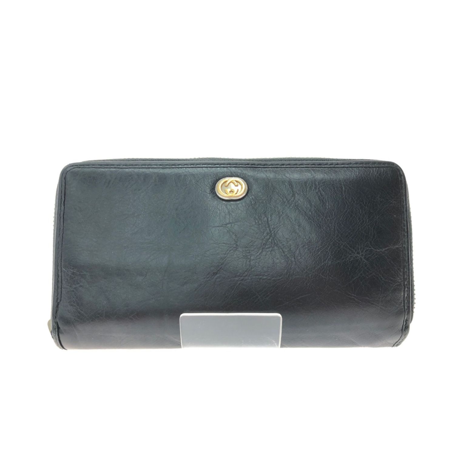 【商品名】中古 GUCCI グッチ ユニセックス ラウンドファスナー 長財布 インターロッキングG シワ加工 ファスナートップ欠品 575988 ブラック Cランク