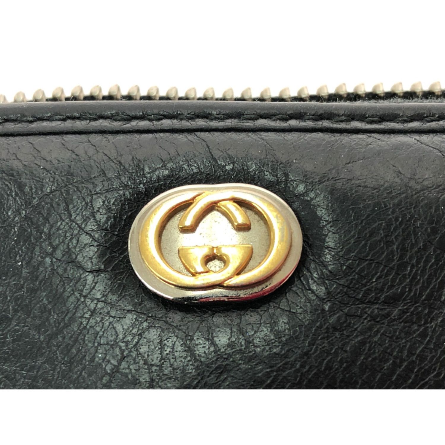 GUCCI グッチ ユニセックス ラウンドファスナー 長財布 インターロッキングG シワ加工 ファスナートップ欠品 575988 ブラック