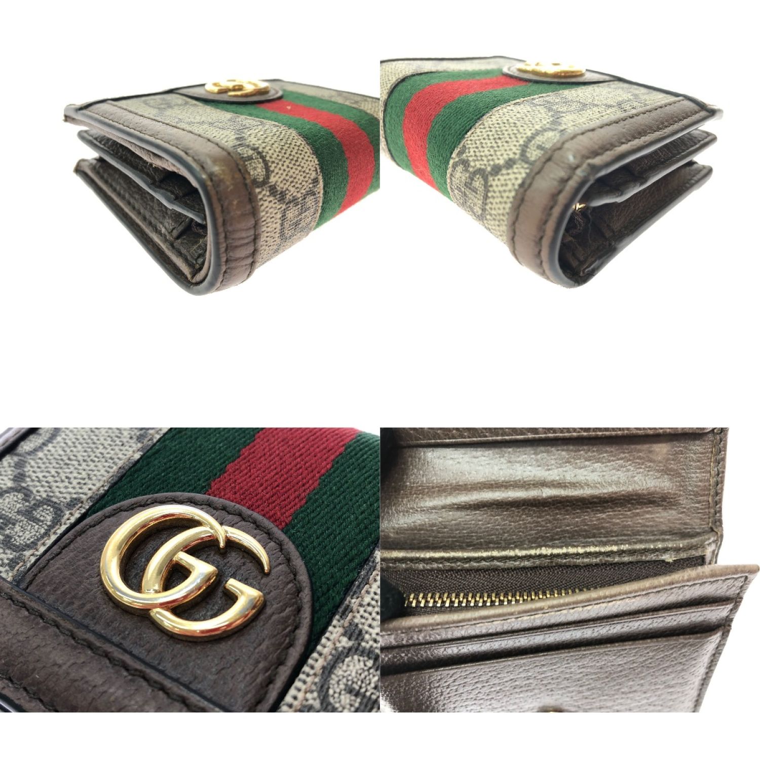 GUCCI グッチ レディース 二つ折り財布 コンパクトウォレット GGスプリーム オフィディア GG 523155・493075 ブラウン