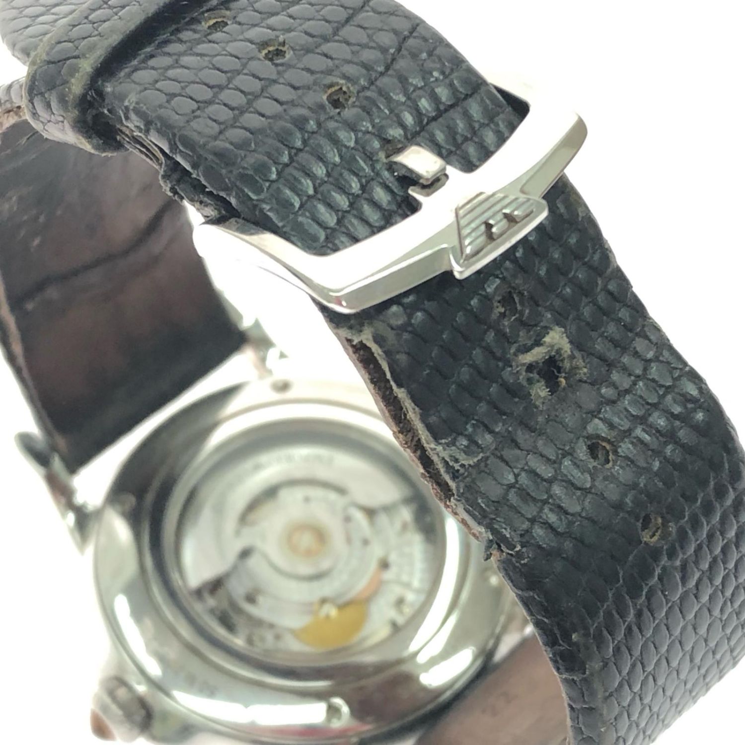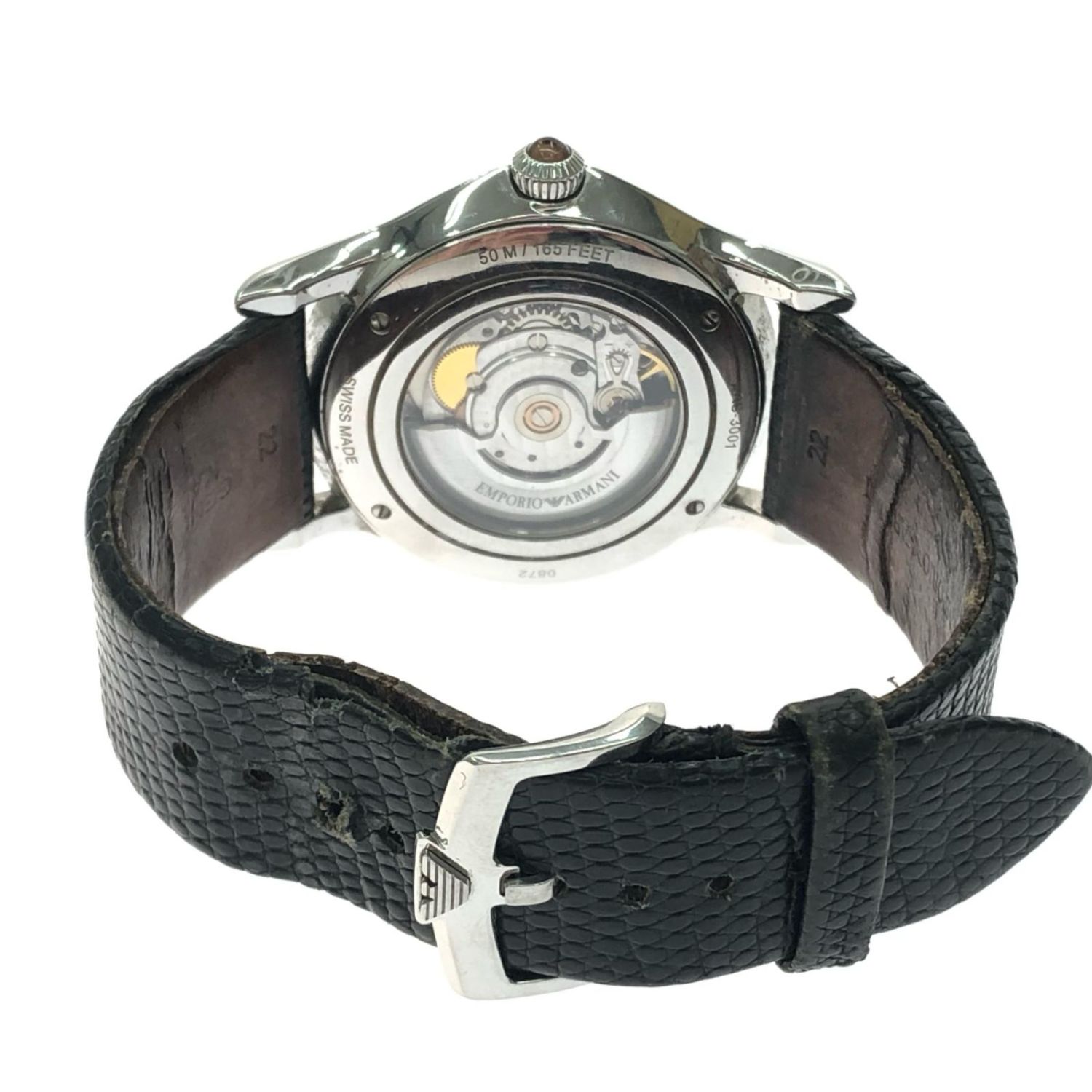 EMPORIO ARMANI エンポリオアルマーニ メンズ腕時計 自動巻き デイト ブラック文字盤 ベルトダメージ ARS-3001