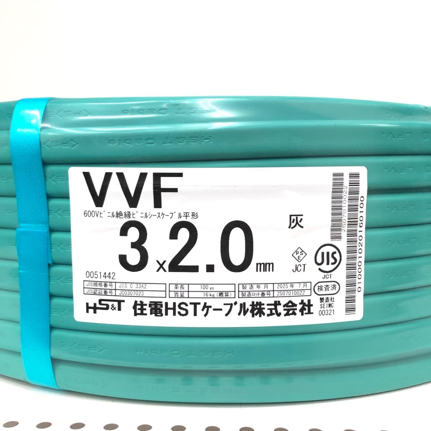 住電HSTケーブル株式会社 電材 VVFケーブル 3×2.0mm 100M 3芯 2025年7月製造