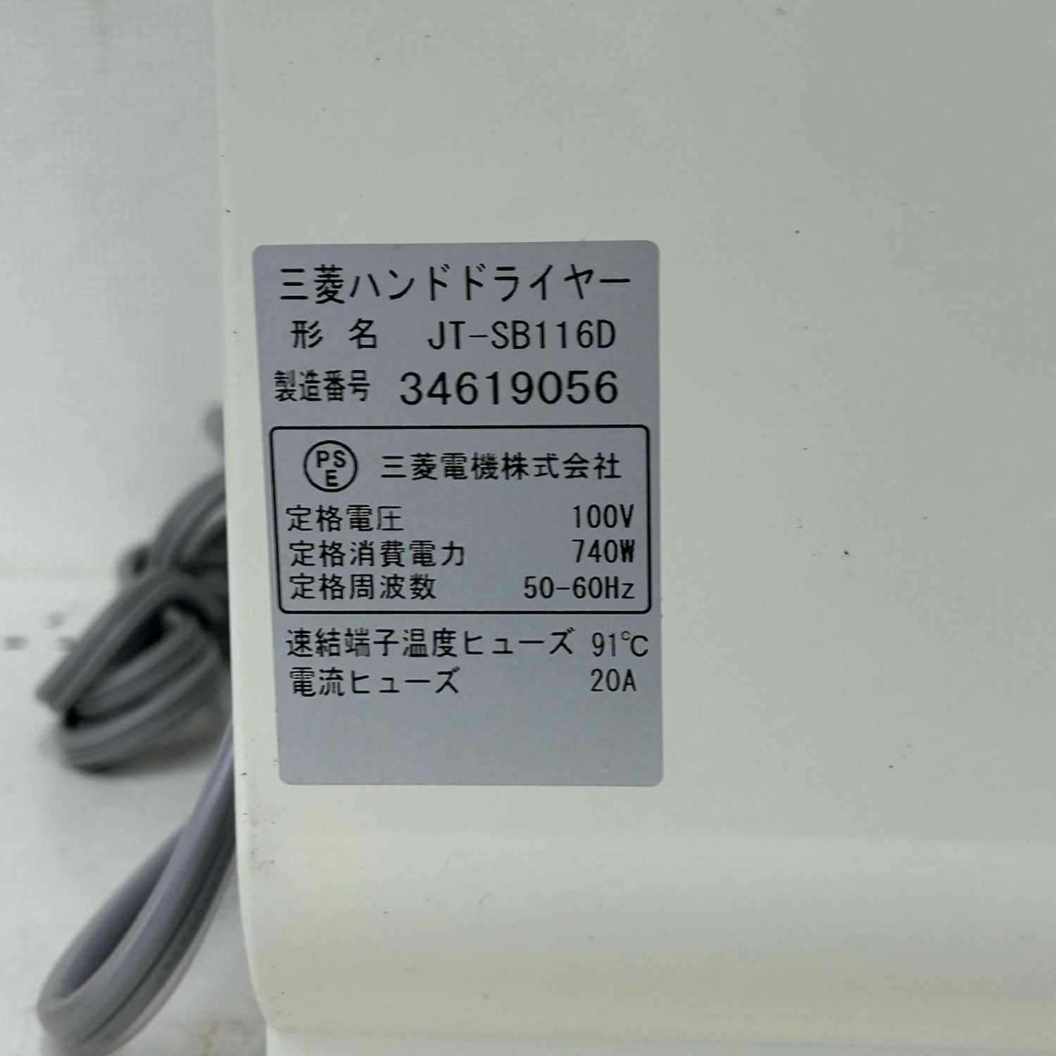【商品名】中古 MITSUBISHI ミツビシ ハンドドライヤー JT-SB116D-W ホワイト Aランク