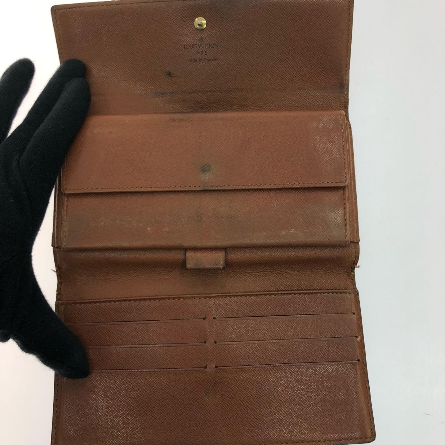 財布内側のレザーにも汚れが目立ちます。