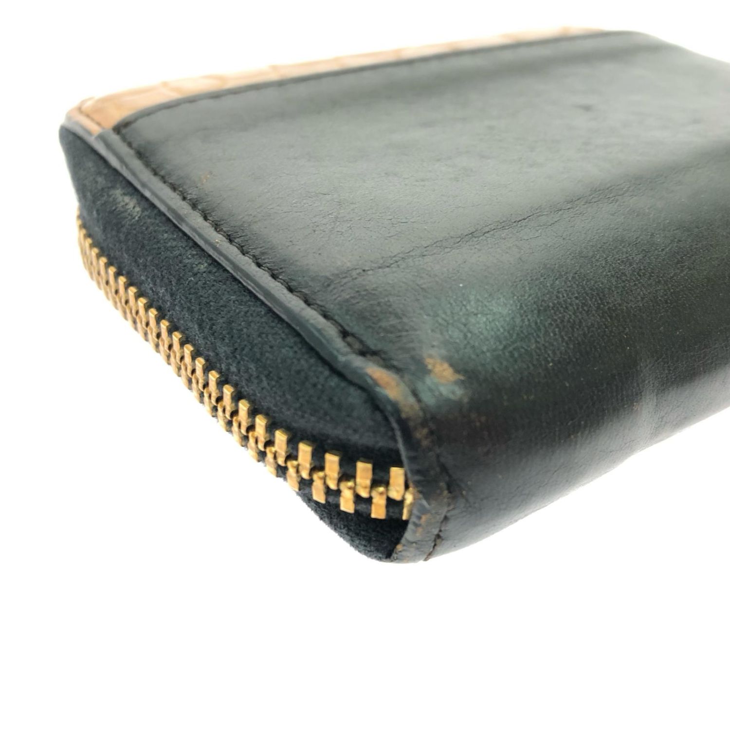【商品名】中古 池田工芸×Lightning メンズ L字ジップ財布 限定モデル ホースハイド×ヌメ クロコダイル ブラック Bランク