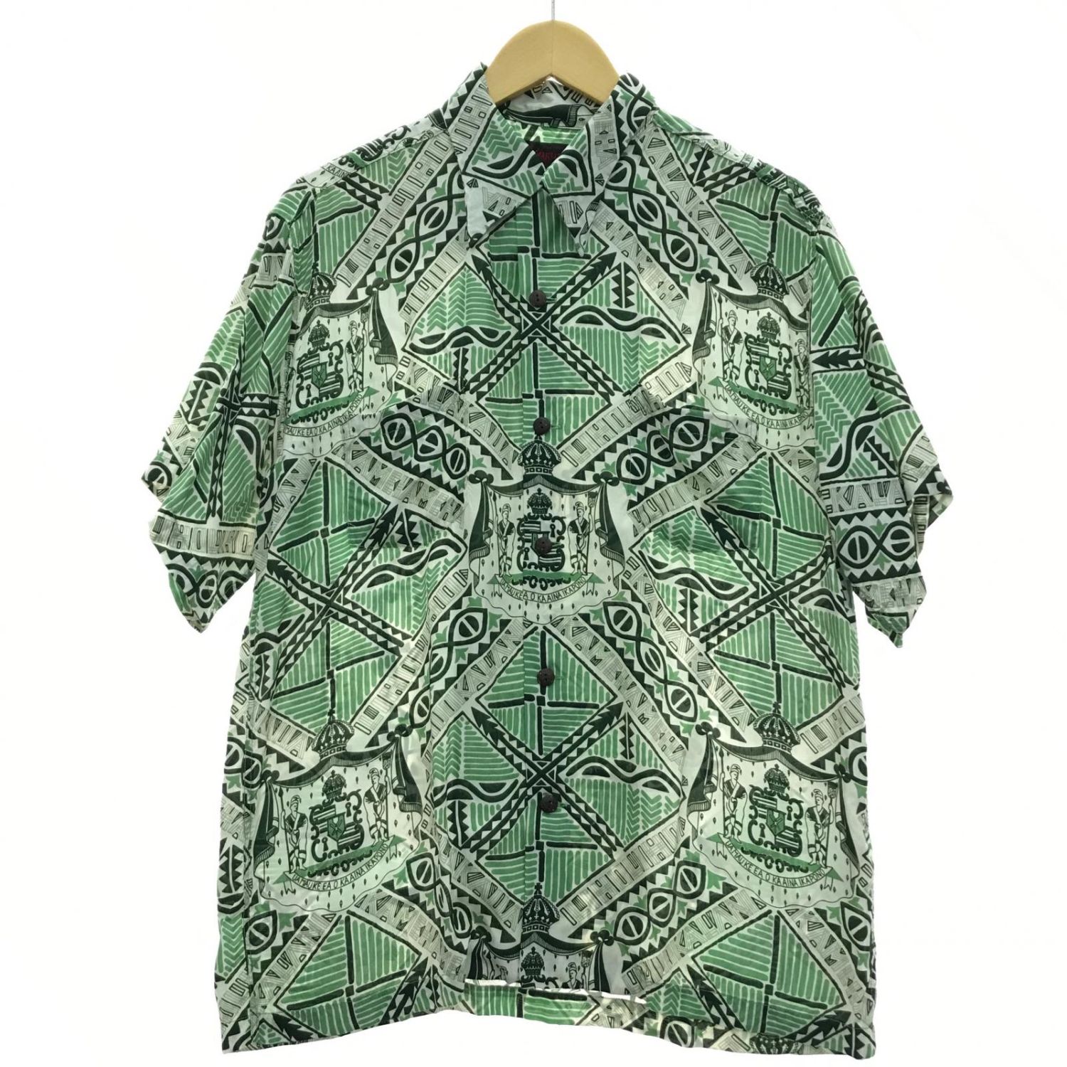 【商品名】中古 SUN SURF サンサーフ シャツ アロハシャツ 夏物 SIZE L メンズ スペシャルエディション HAWAIIAN MONARCH SS39479 グリーン Bランク