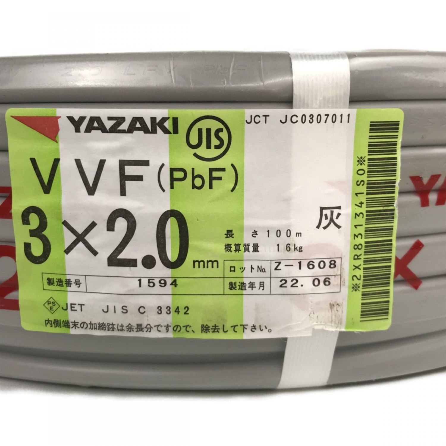 【商品名】中古 YAZAKI ヤザキ VVFケーブル 3×2.0 条長100m 16kg 矢崎 Nランク