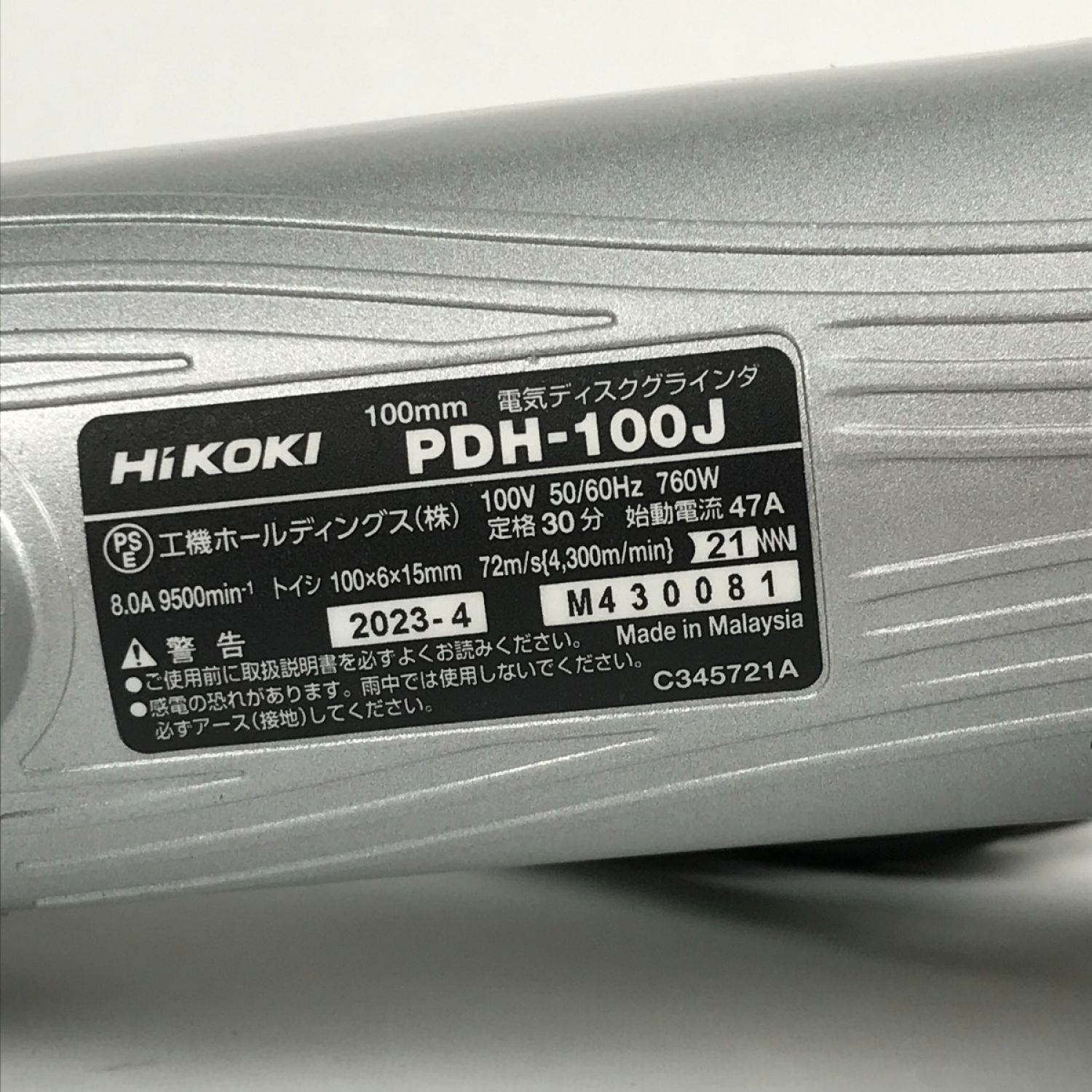 【商品名】中古 HiKOKI ハイコーキ 100mm 電気ディスクグラインダ PDH-100J グレー Sランク