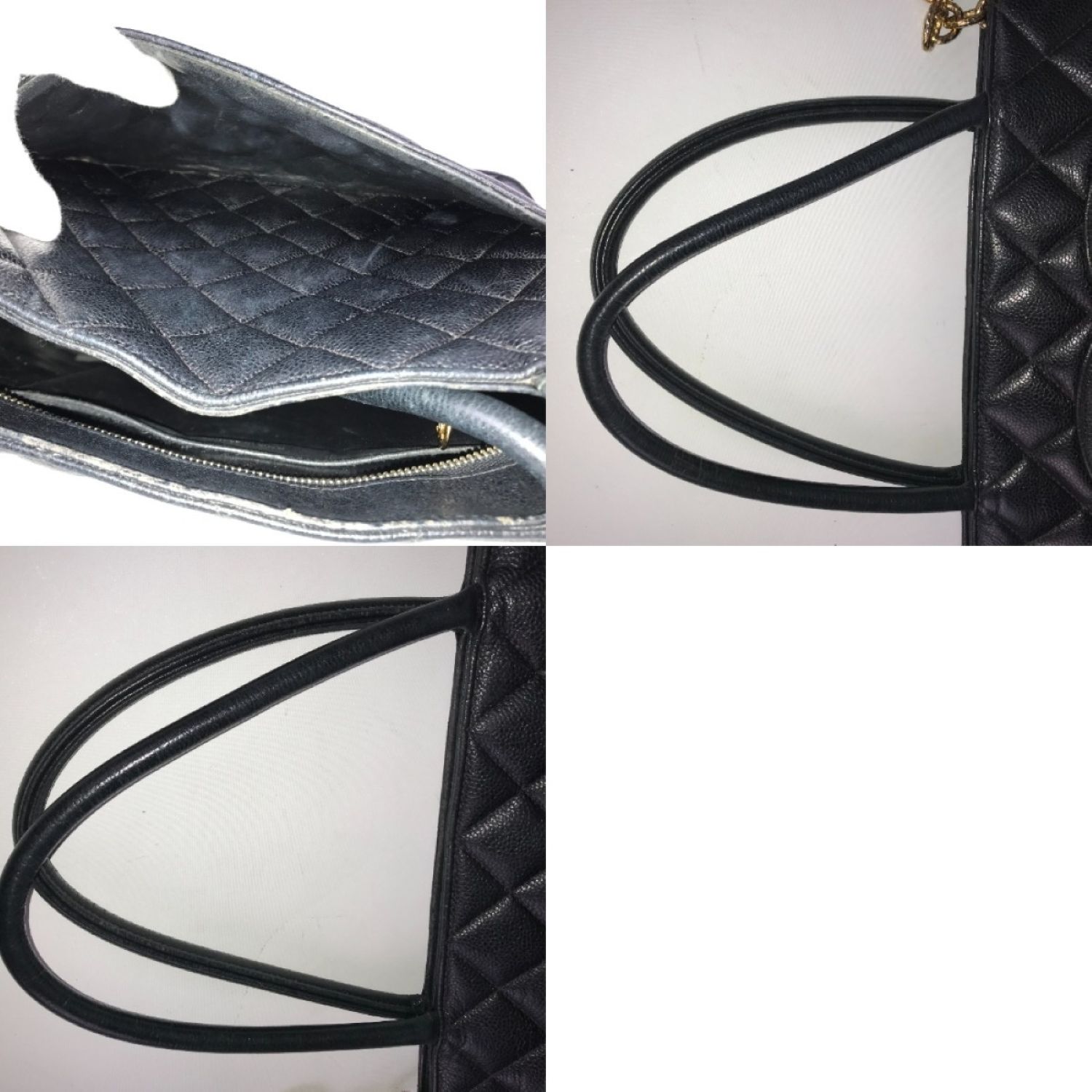 【商品名】中古 CHANEL シャネル 復刻トート キャビアスキン ゴールドチャーム トートバッグ ブラック Cランク