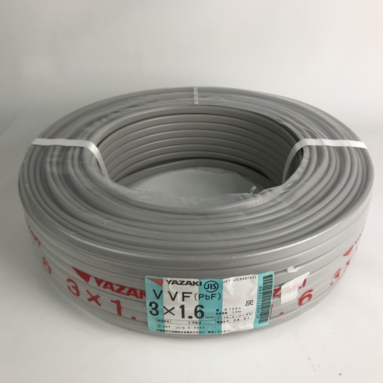 【商品名】中古 YAZAKI 電材 VVFケーブル 3芯×1.6mm×長さ100m 2024年01月製造 Nランク