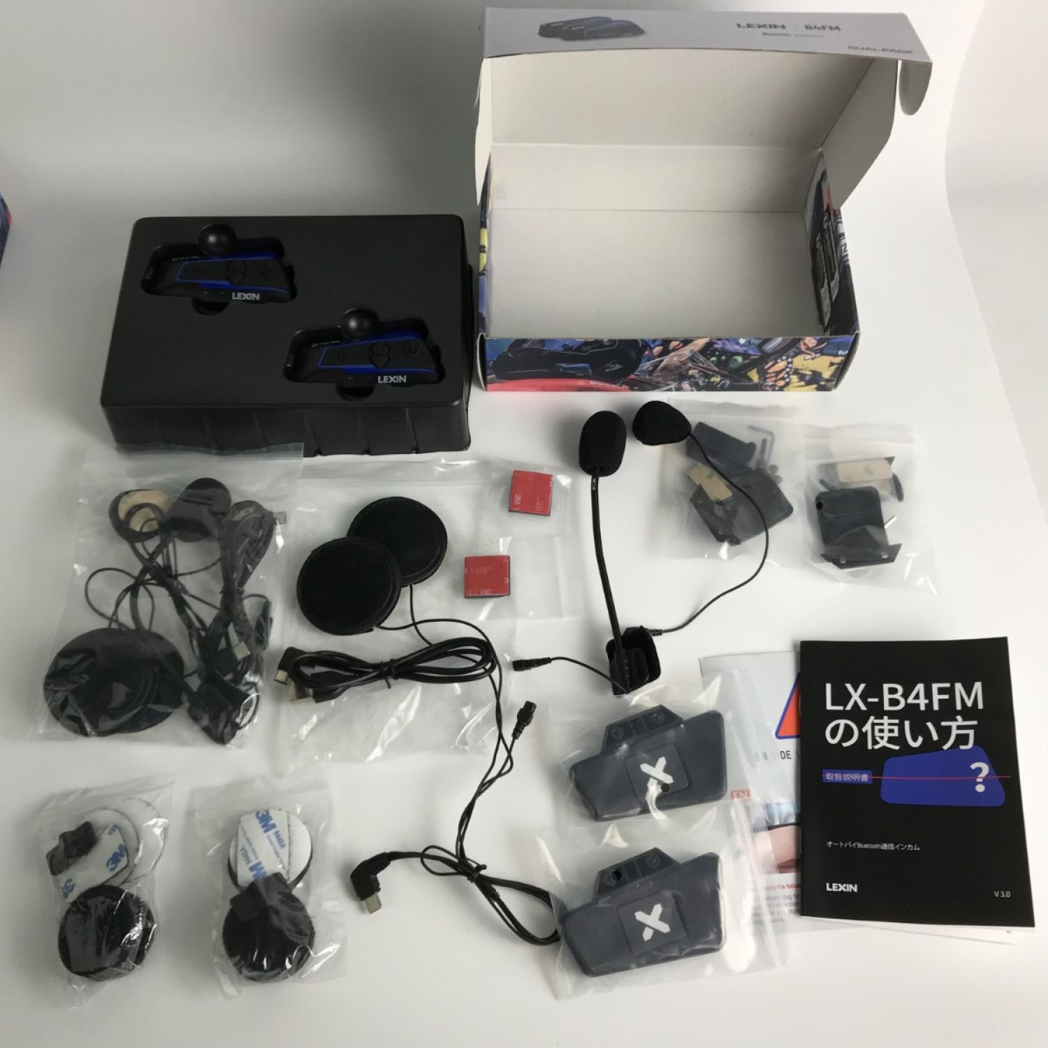 【商品名】中古 バイク用インカム LEXIN B4FM Dual Pack 2個入り4箱セット Bluetoothインカム Aランク