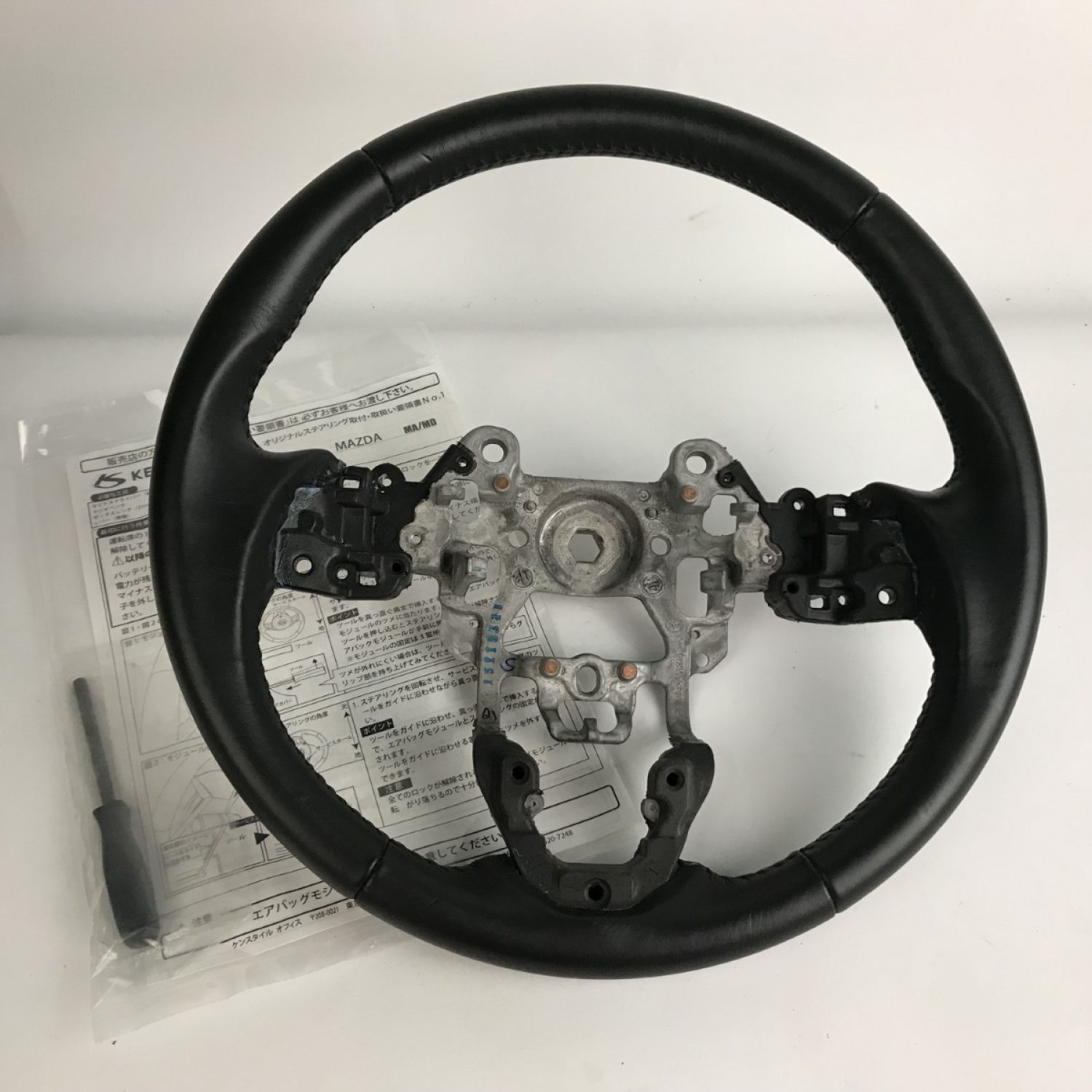 【商品名】中古 KENSTYLE(ケンスタイル) MAZDA マツダ 純正本革巻き オリジナルステアリング ブラックレザー Bランク