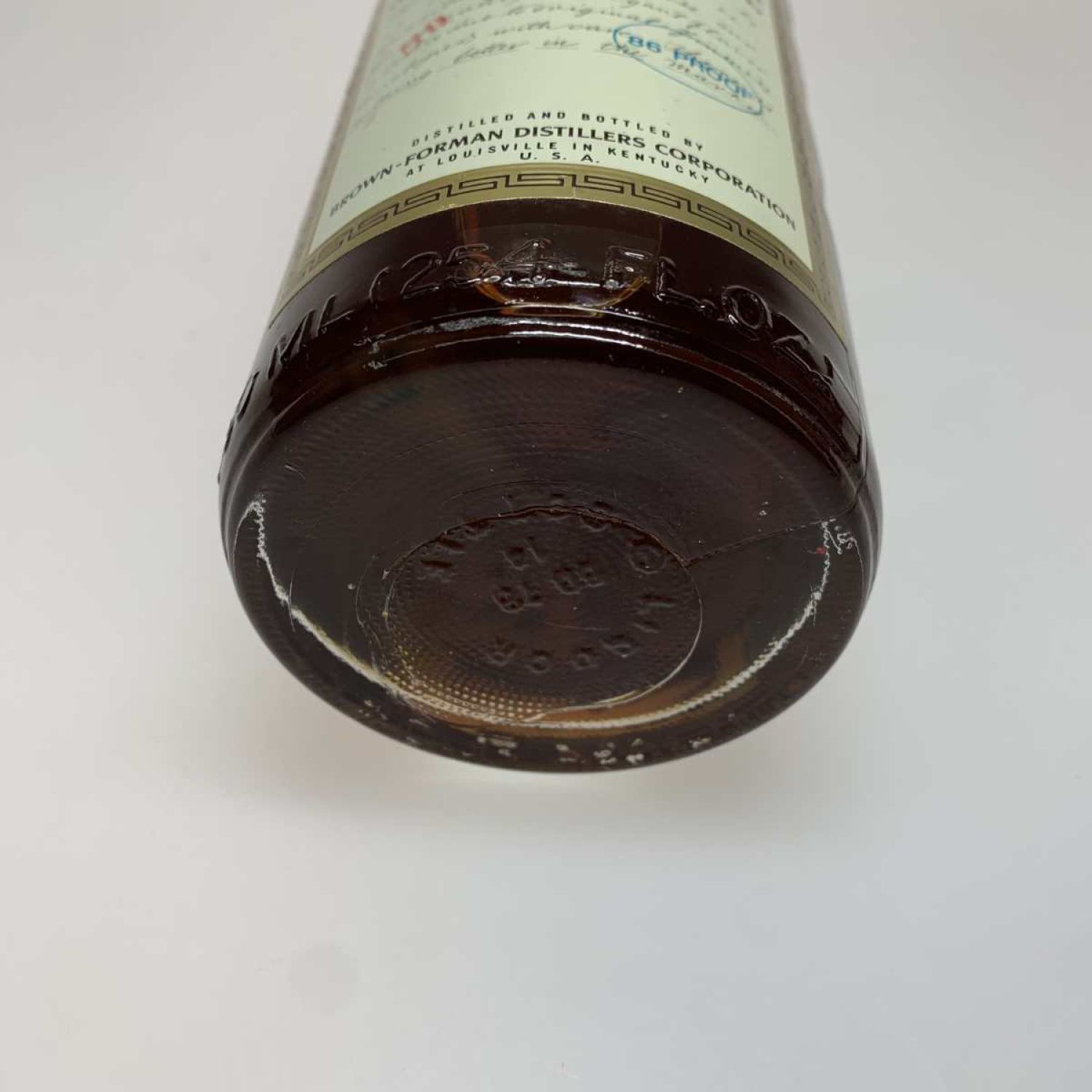 ビンの底面部分にヒビ、あり。