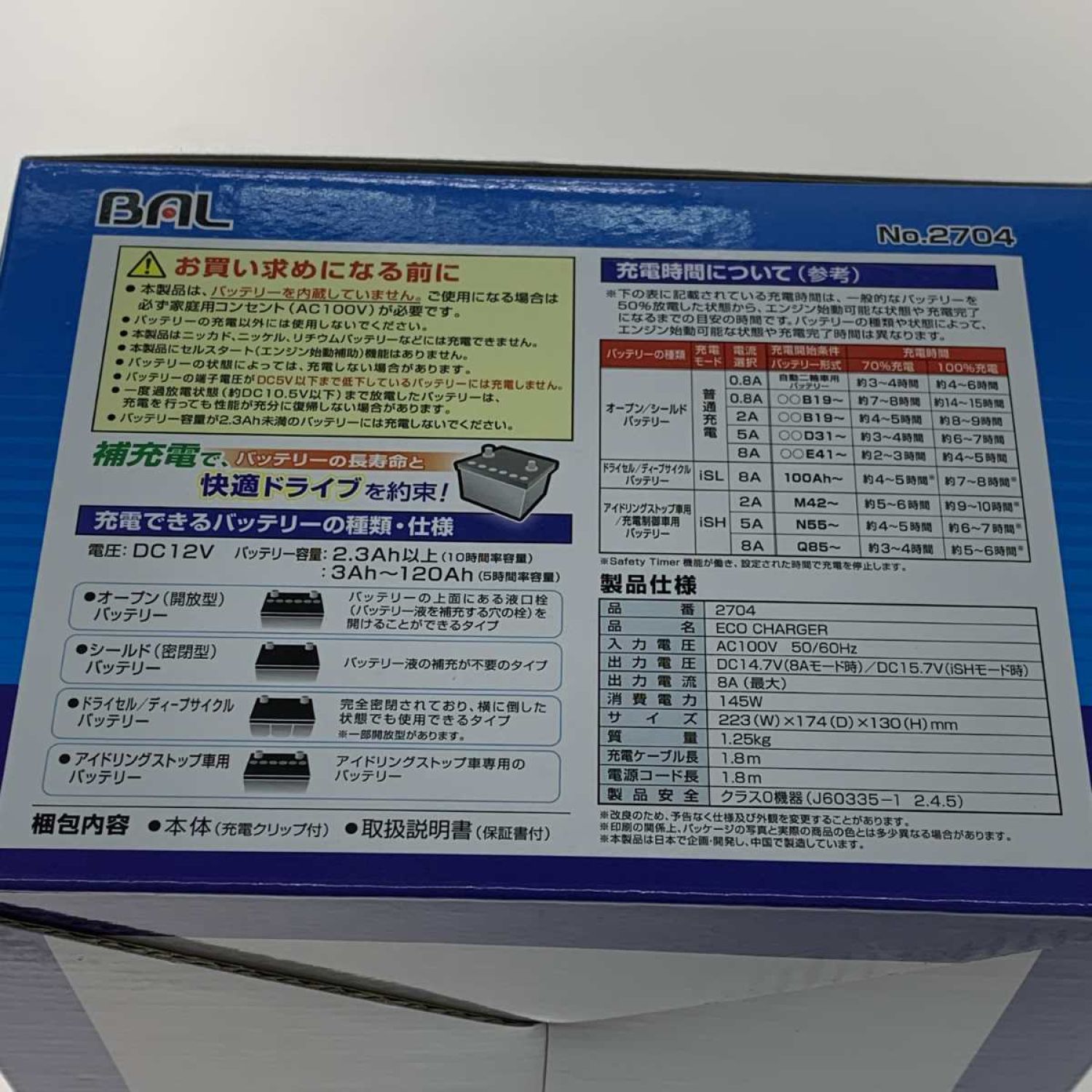 BAL バル バッテリーチャージャー 12Vバッテリー専用 2704 グリーン