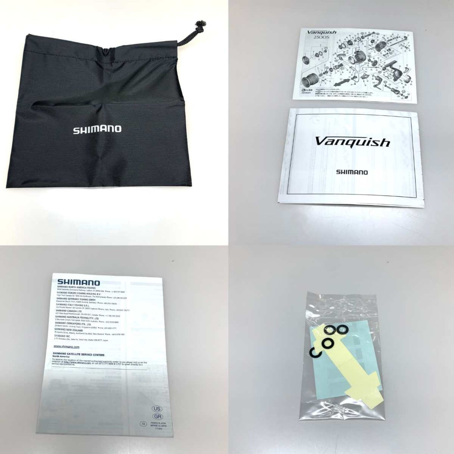 【付属品】取扱説明書,リールポーチ,調整ワッシャー,パーツリスト ・箱