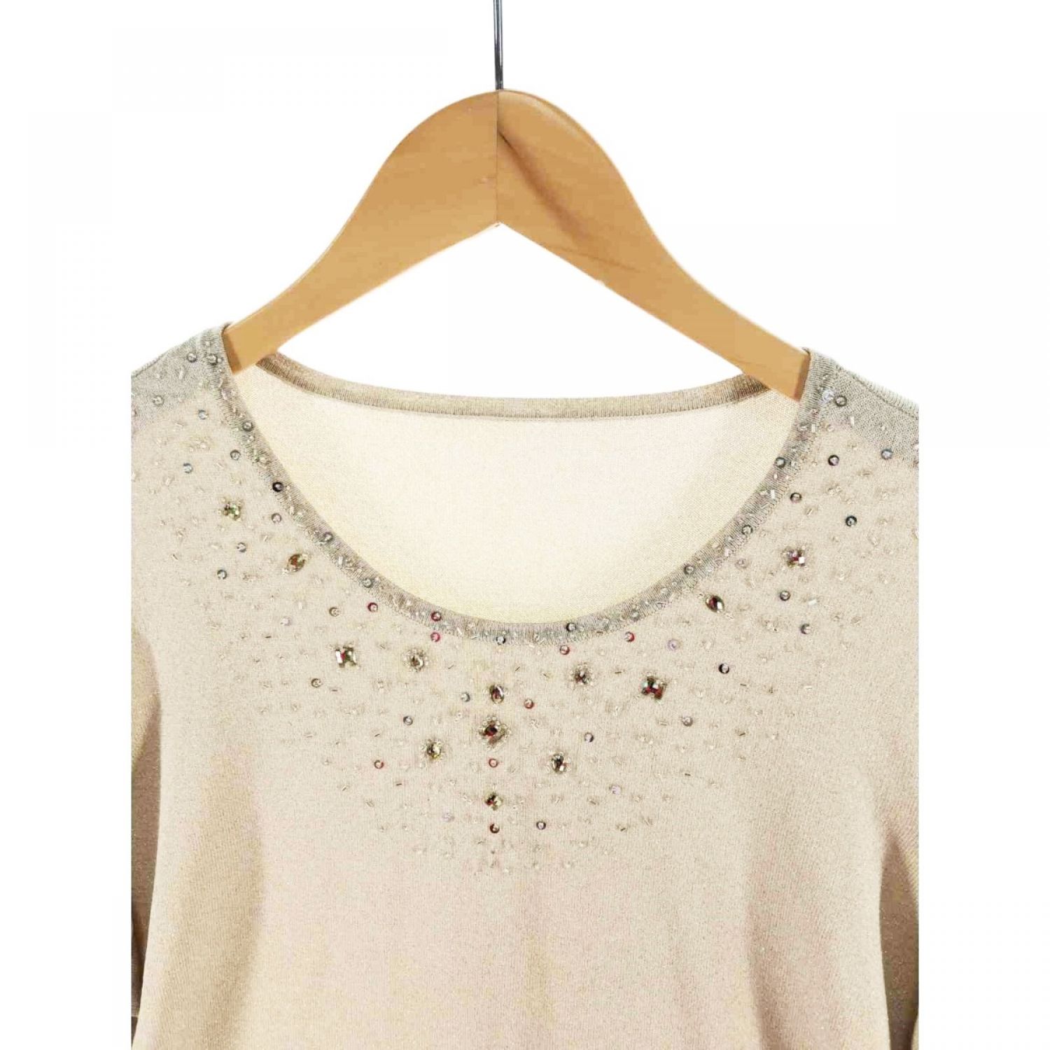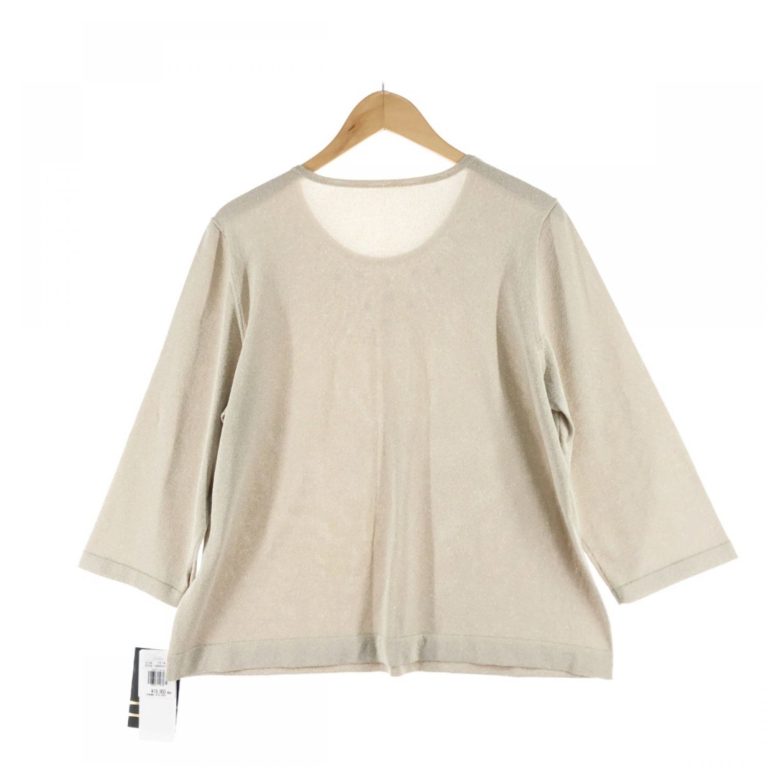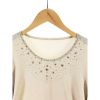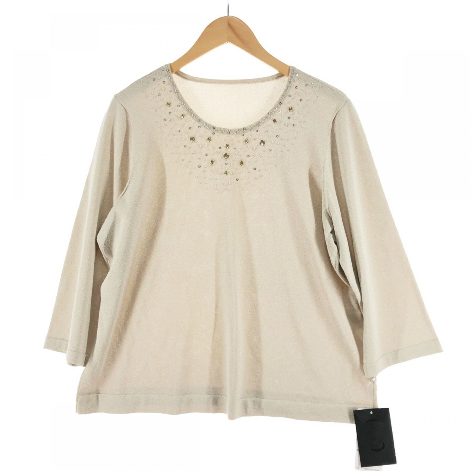 【商品名】中古 Leilian レリアン レディース カットソー 7分袖カットソー ラメ ビジュー付 サイズ15+ ベージュ Sランク