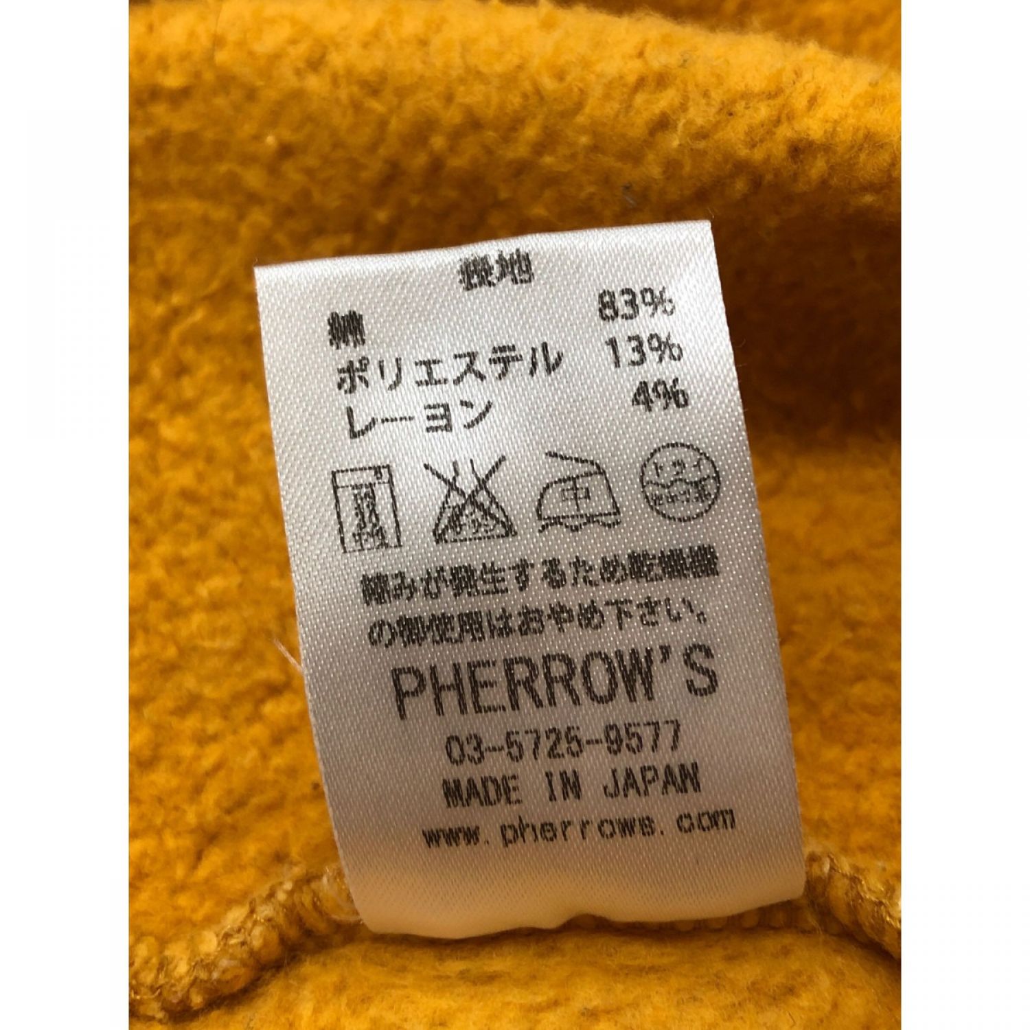PHERROW'S フェローズ メンズ スウェット サイズLL LOT# PS120/PS301 イエロー
