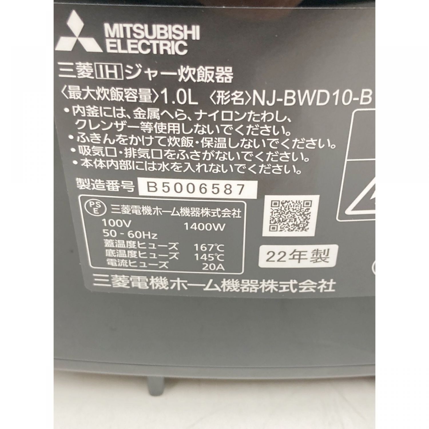 【商品名】中古 MITSUBISHI ミツビシ 本炭釜 紬 IH炊飯器 5.5合 NJ-BWD10-B ブラック Bランク