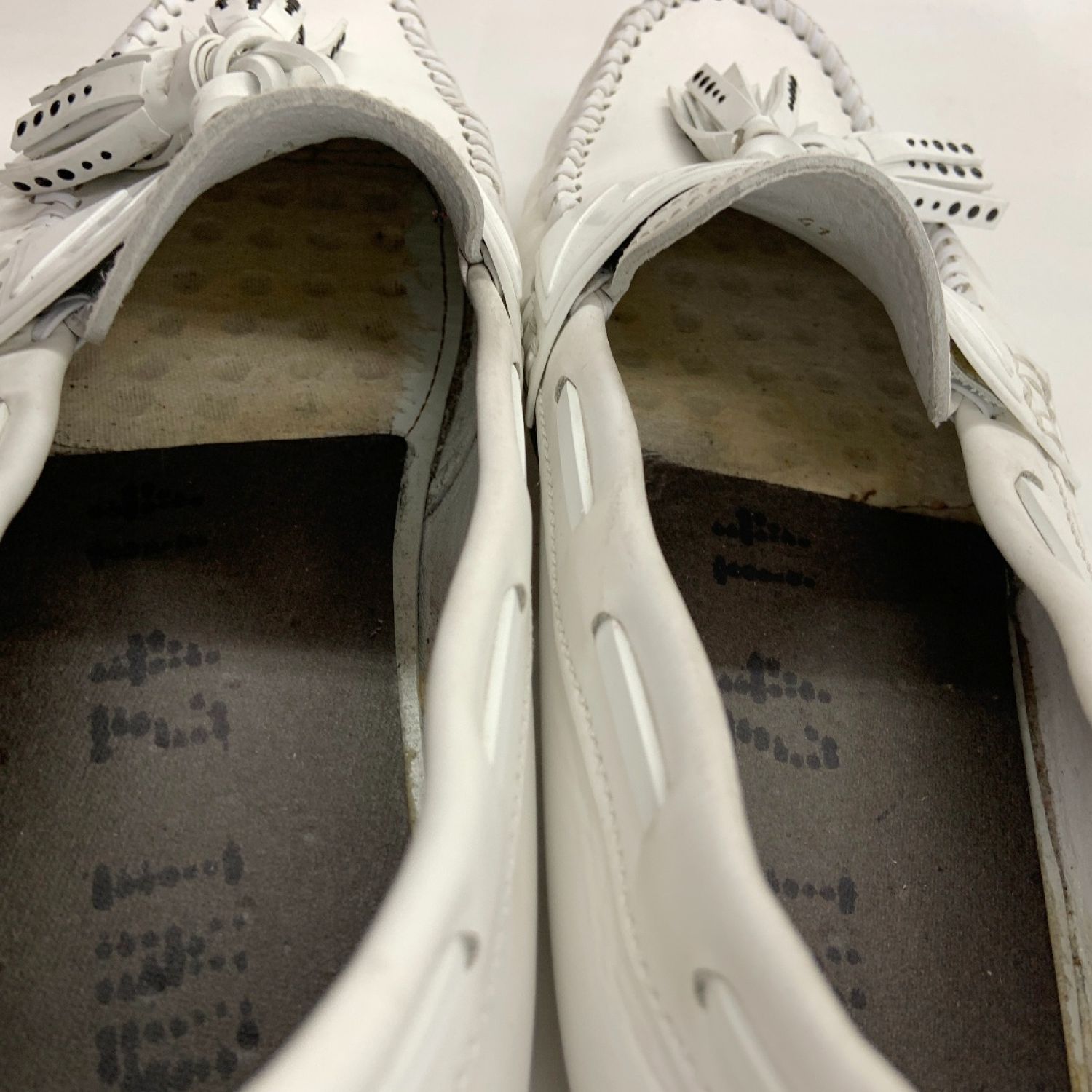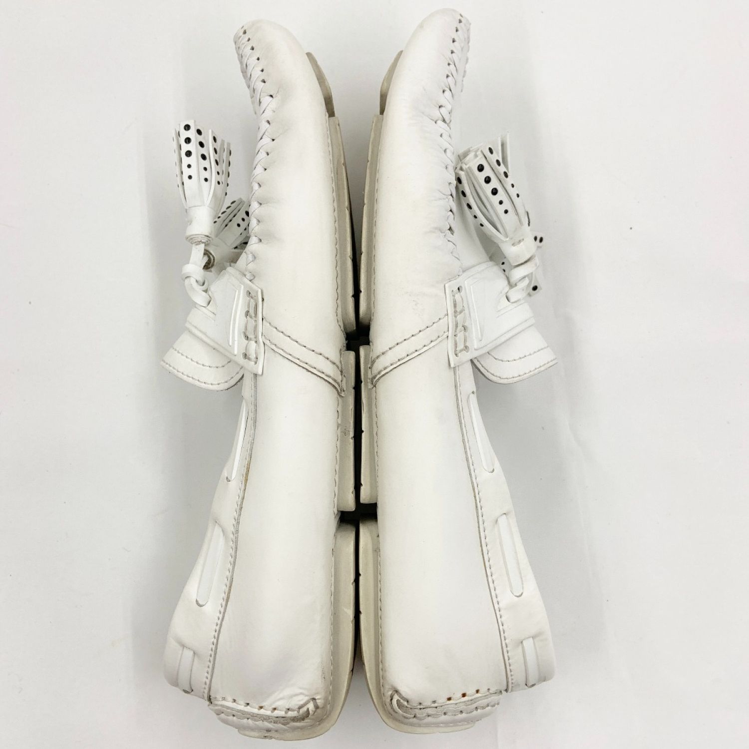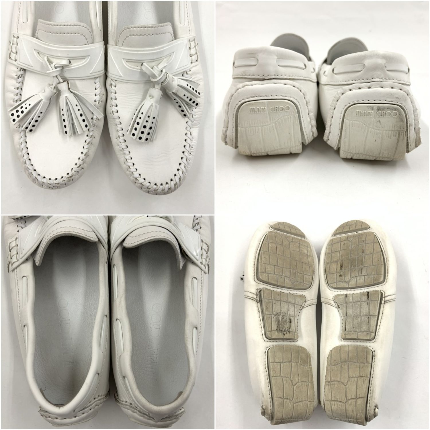 【商品名】中古 JIMMY CHOO ジミーチュウ タッセル スリッポン ローファー シューズ ホワイト Cランク