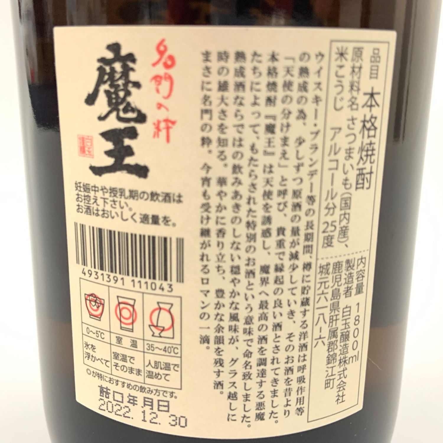 【商品名】中古 北海道内限定発送 白玉醸造 魔王 名門の粋 焼酎 1800ml 25% Sランク 未開栓