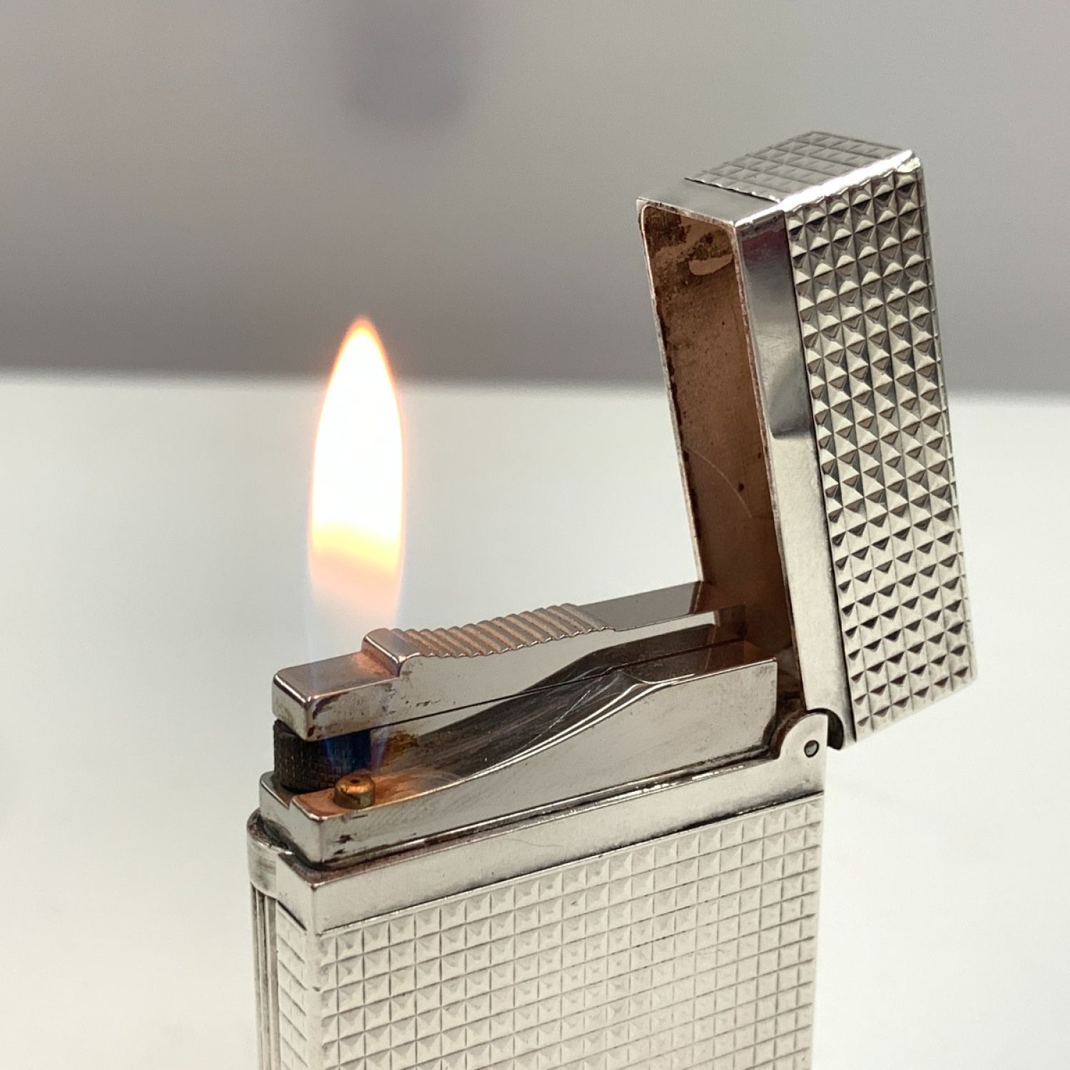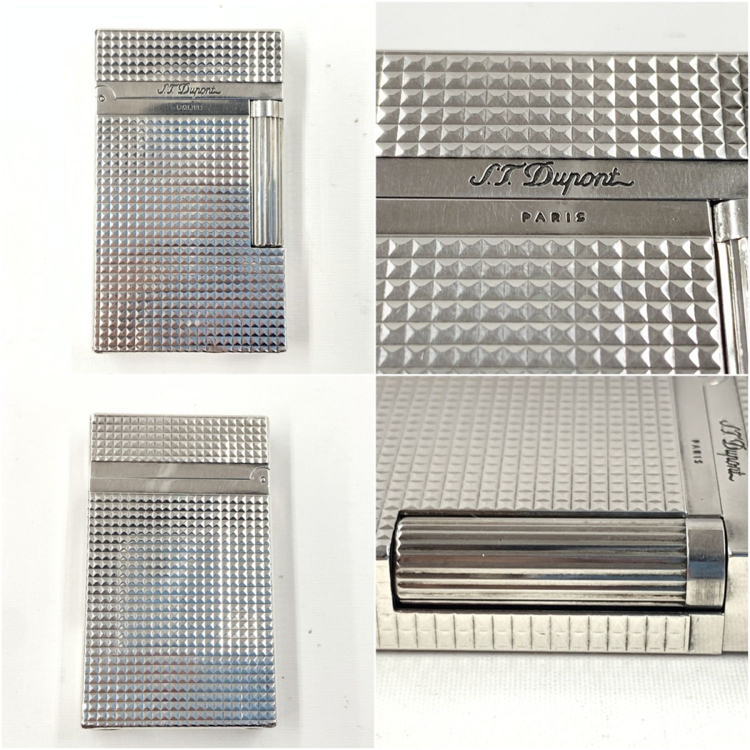S.T.Dupont エステーデュポン ライン2 ダイヤモンドヘッドカット ガスライター 16184 シルバー 現状渡し