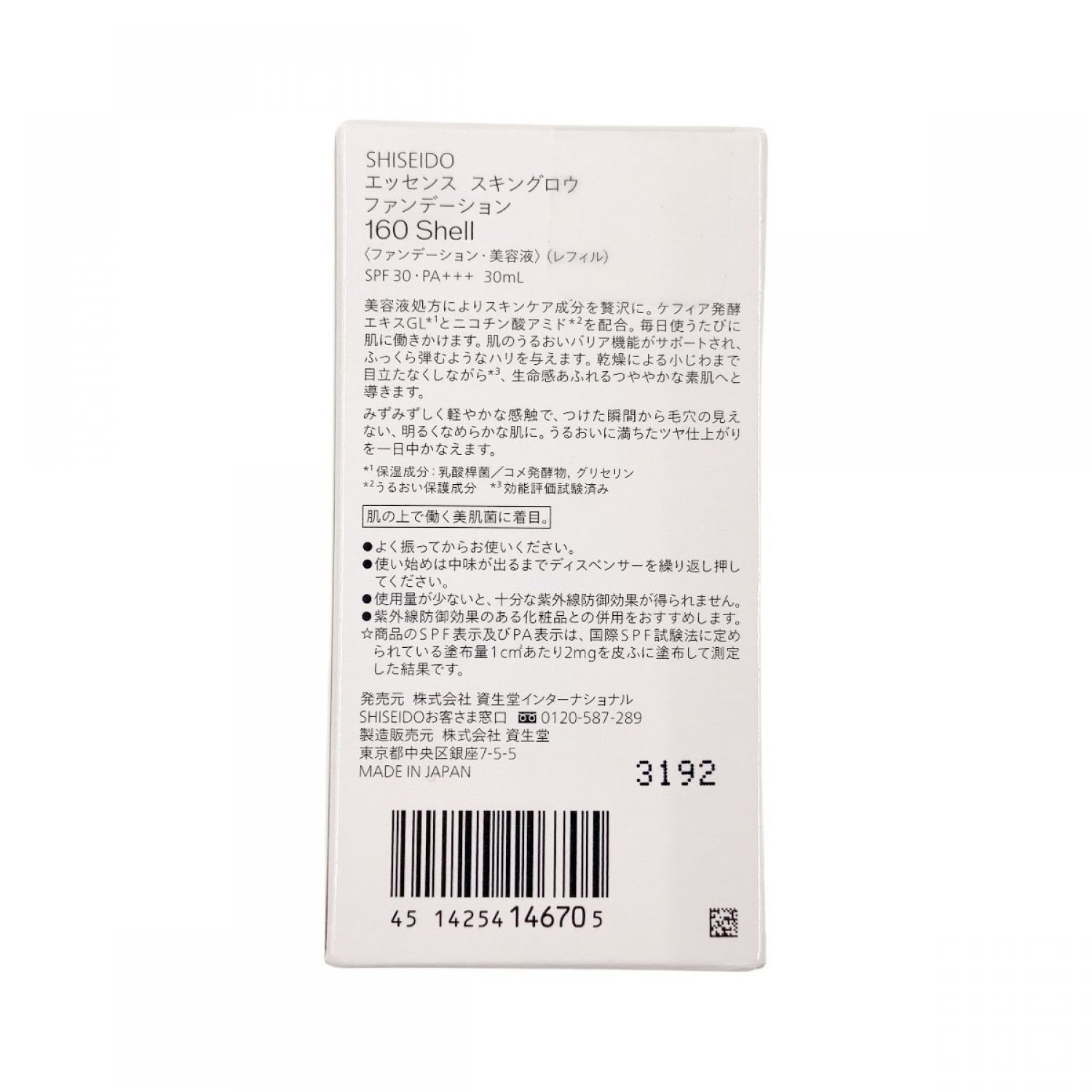 資生堂 エッセンス スキングロウ ファンデーション 160Shell 30ml