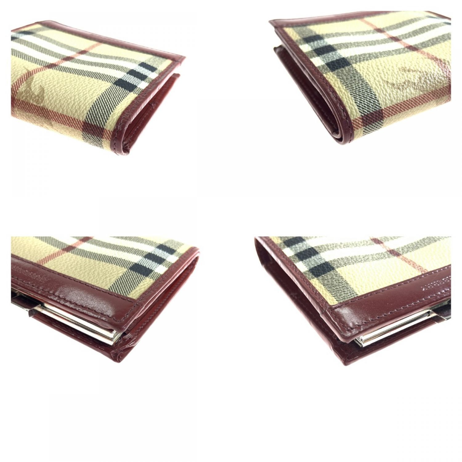 BURBERRY LONDON バーバリーロンドン ノバチェック がま口 2つ折り財布 レッド x ベージュ 現状渡し