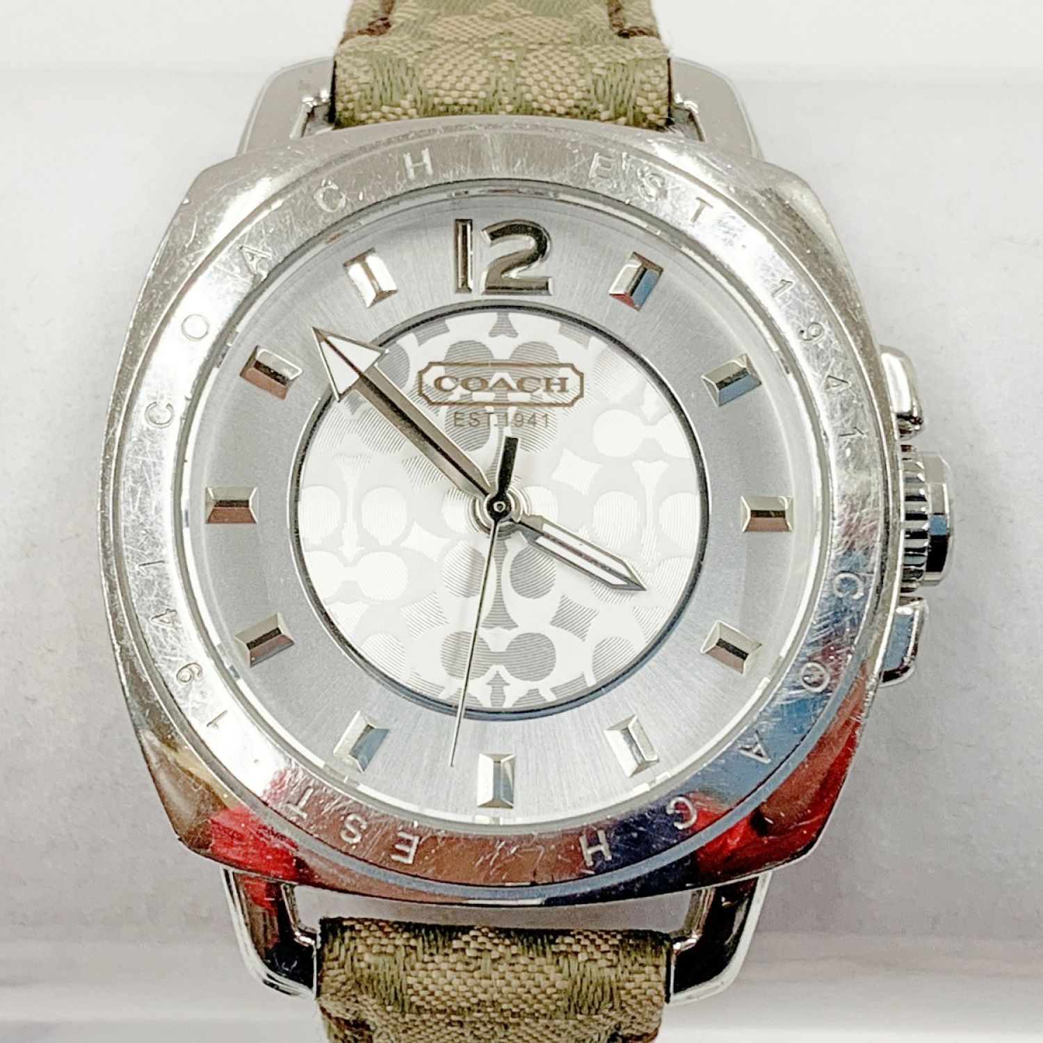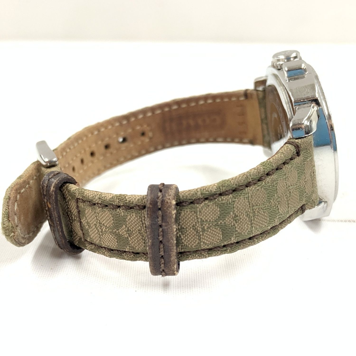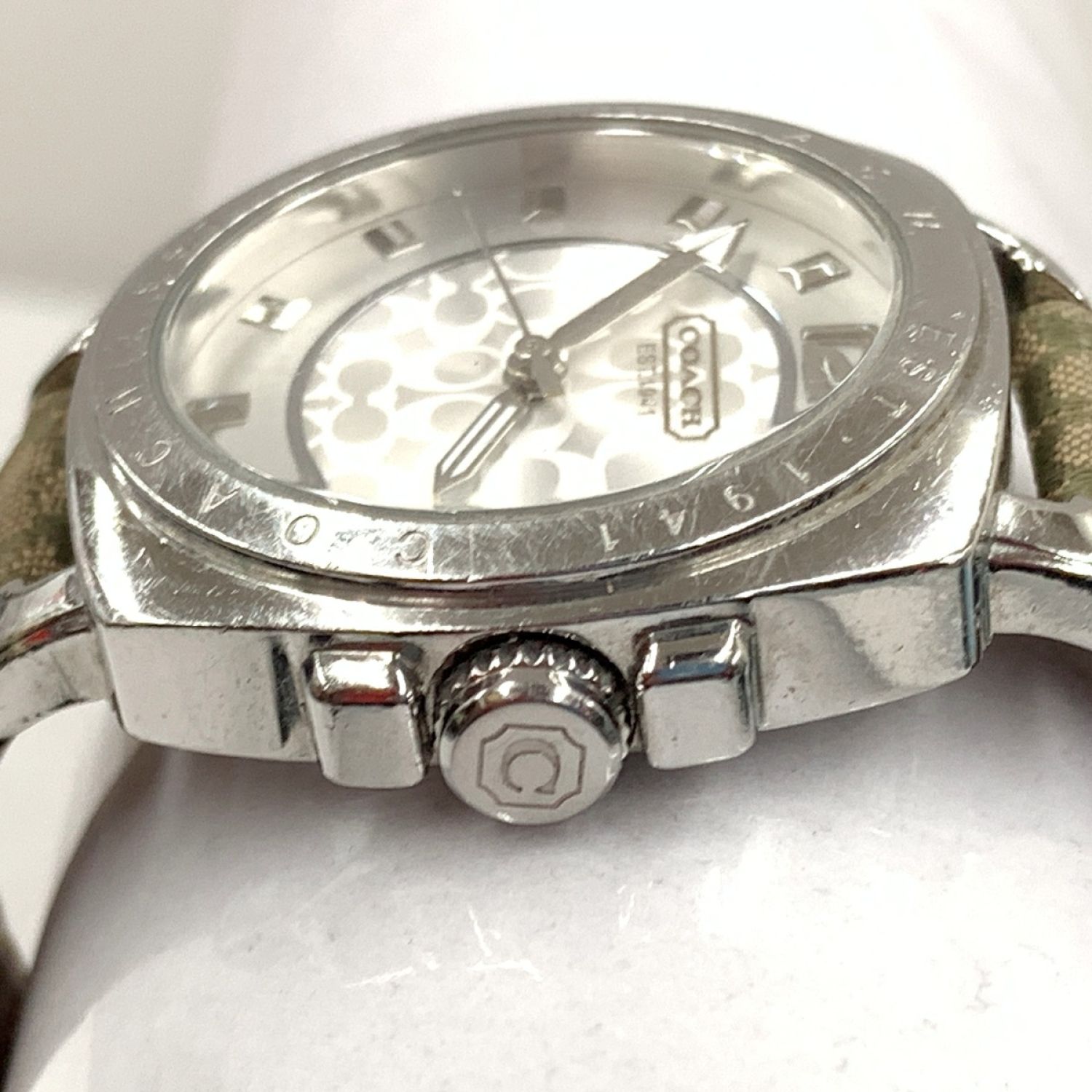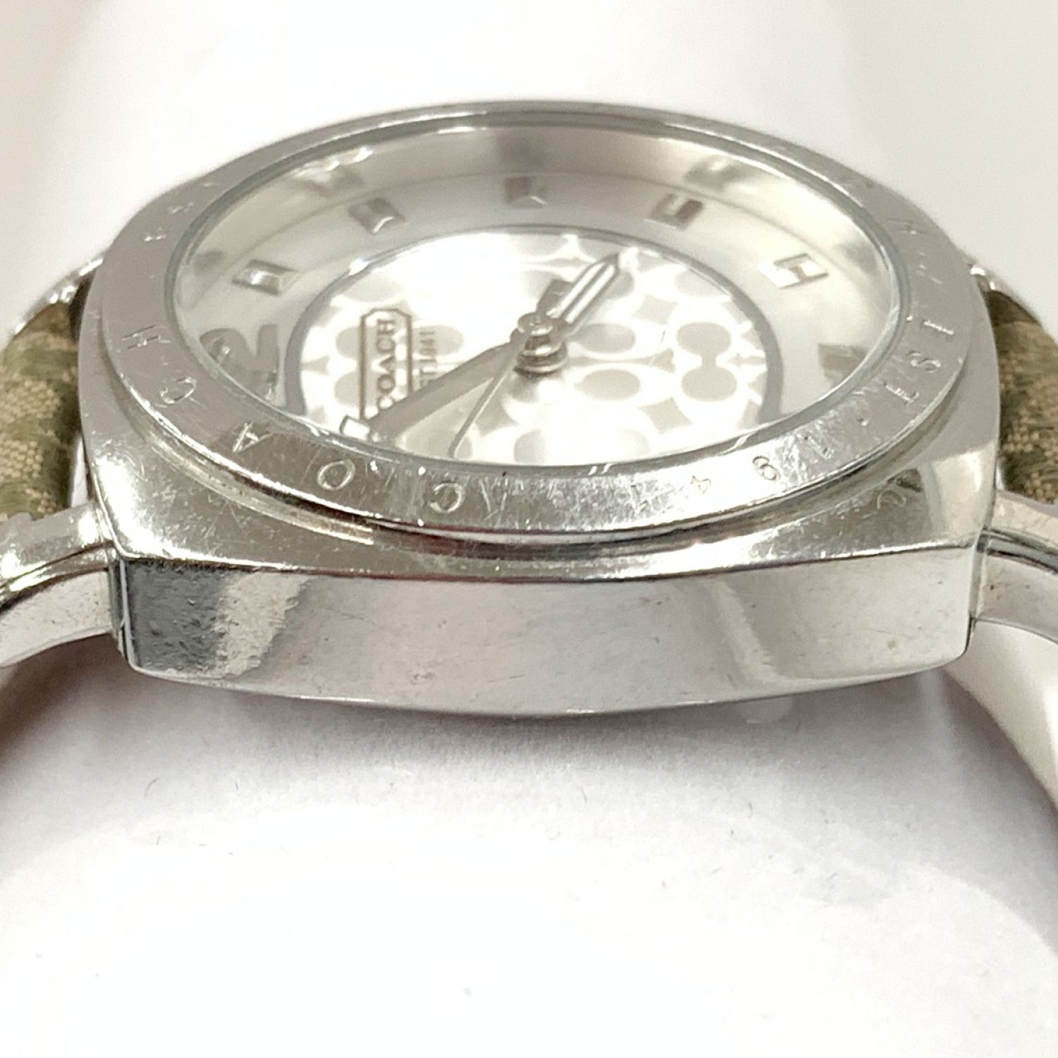 【商品名】中古 COACH コーチ ミニシグネチャー クォーツ腕時計 AC.64.7.14.0606 シルバー x グリーン Cランク