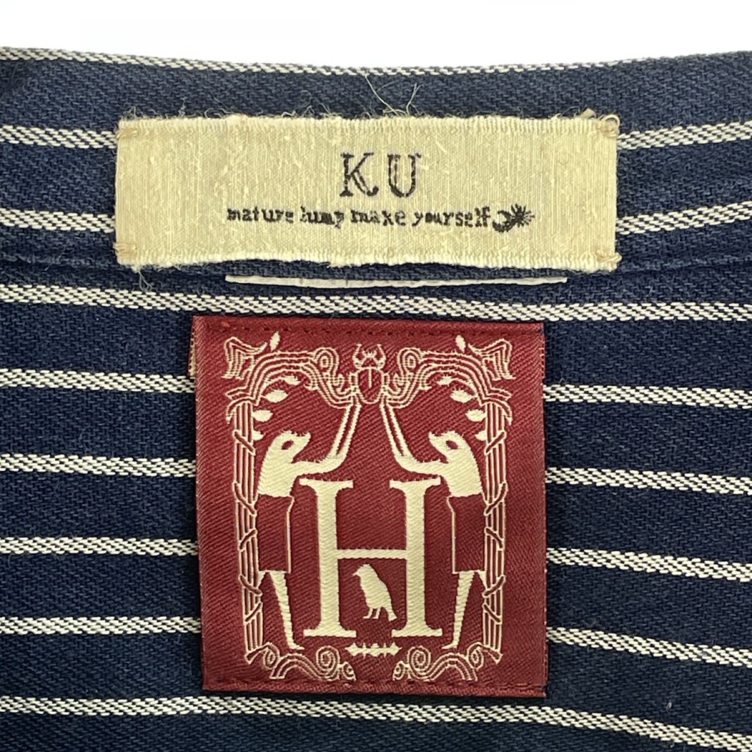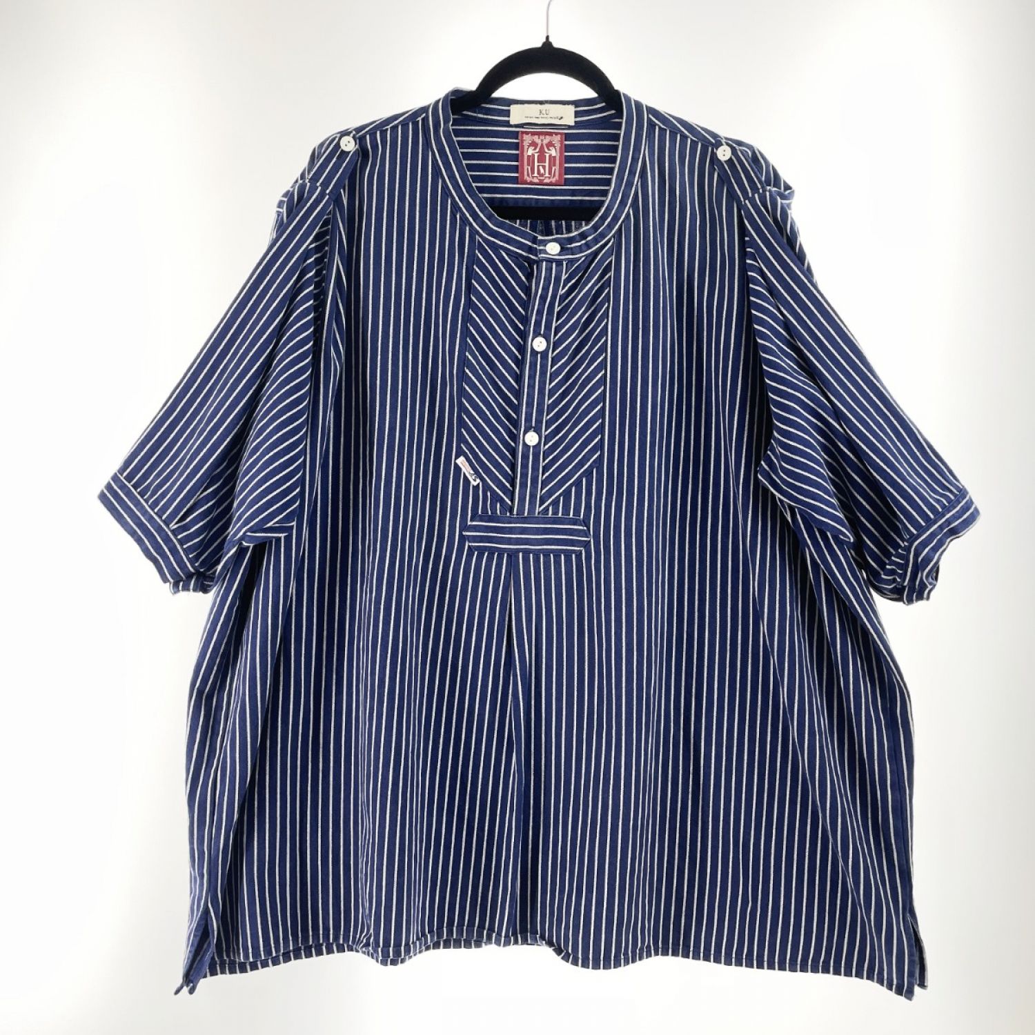【商品名】中古 modAS モダス メンズ シャツ フィッシャーマンシャツ ストライプ リメイク品 ネイビー Bランク