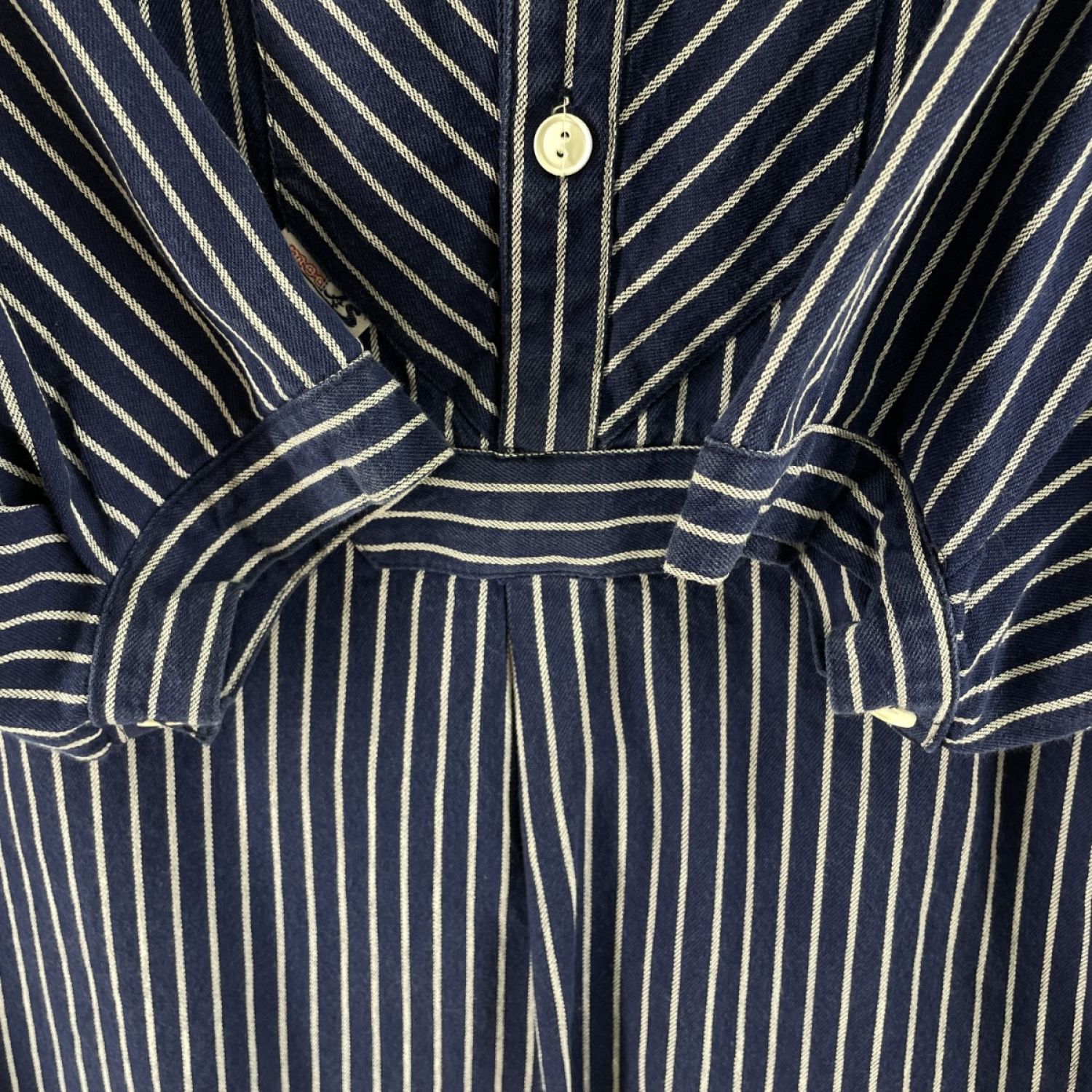 modAS モダス メンズ シャツ フィッシャーマンシャツ ストライプ リメイク品 ネイビー