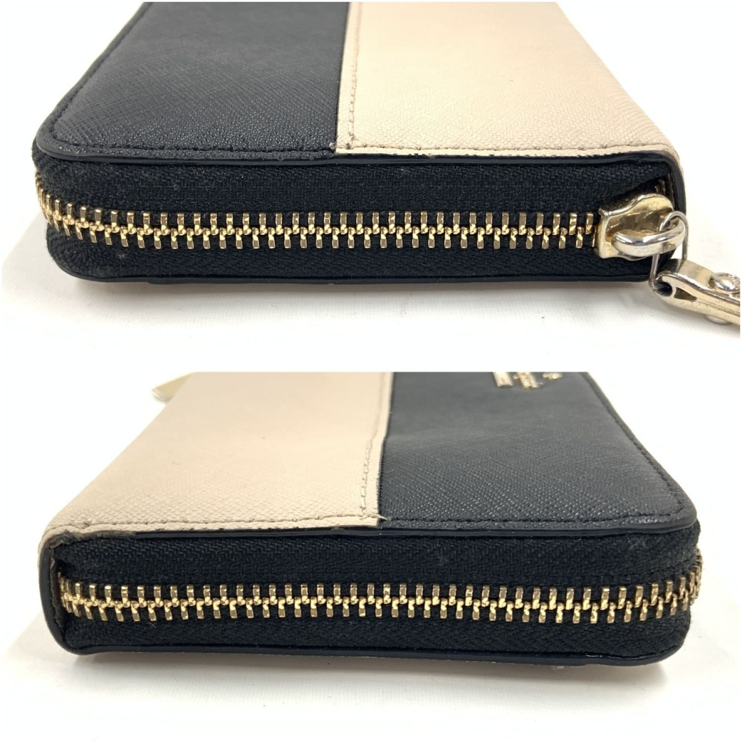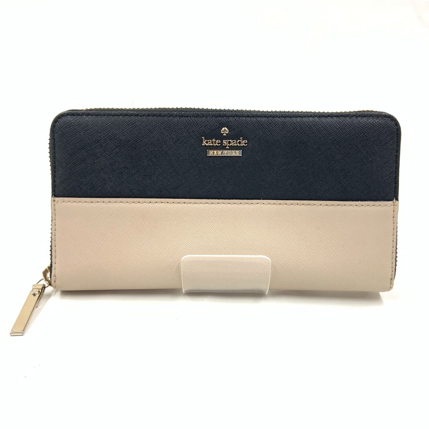 Kate Spade ケイトスペード ラウンドファスナー 長財布 ブラック x ベージュ