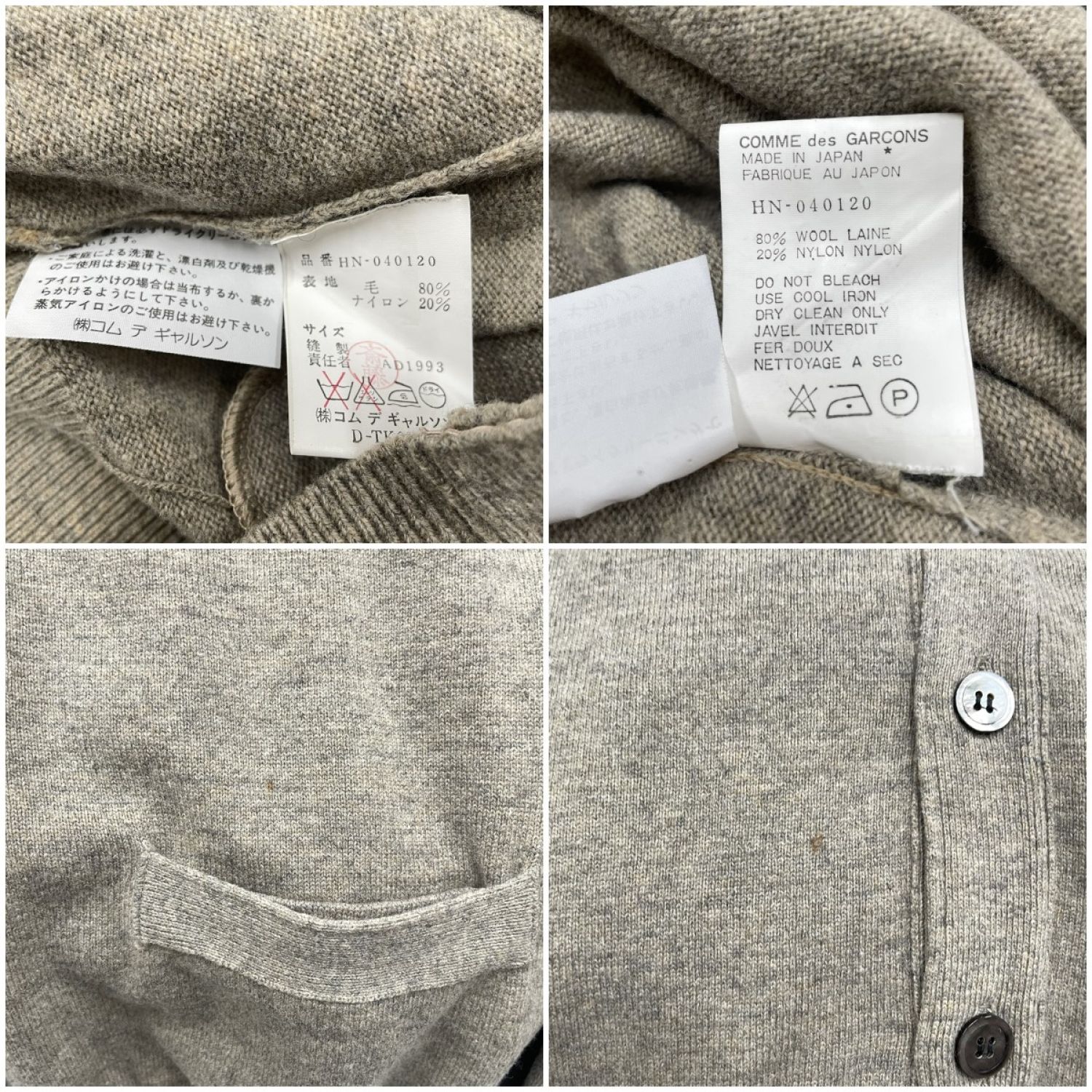 【商品名】中古 COMME des GARCONS HOMME メンズ ニットカーディガン サイズ記載なし HN-040120 ベージュ Cランク