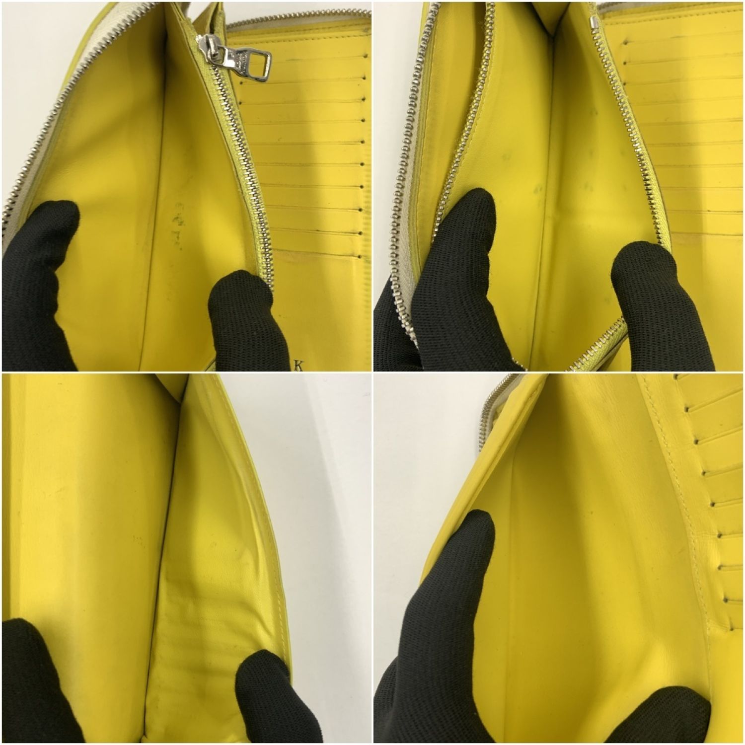 内側:薄汚れ、汚れ、ファスナーの押し跡があります。