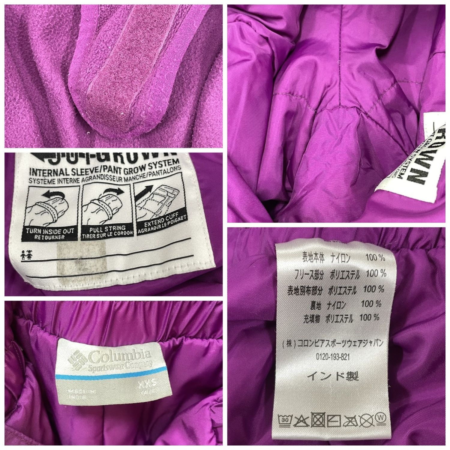 【商品名】中古 Columbia コロンビア スキーウエア上下セット 110cm パープル Bランク